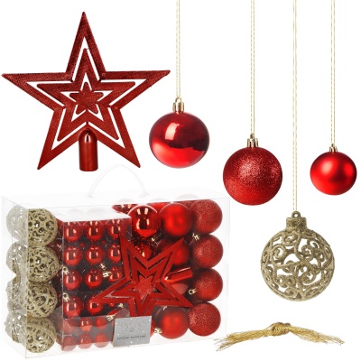 Set kuglica 6/4/3 cm 101 kom. crveno-zlatne