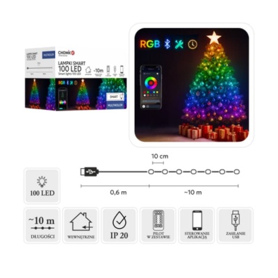 LED 100 lampica, višebojne, USB napajanje, duljina 10 + 0,6 m