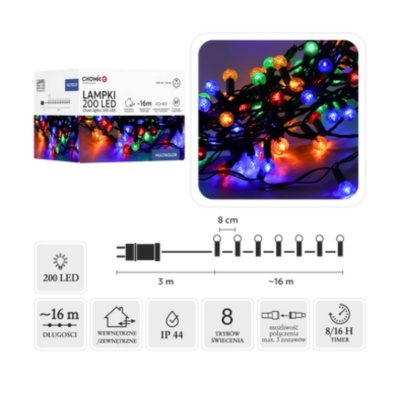 LED božićne lampice “Cherry Ball” – 200 lampica, višebojne