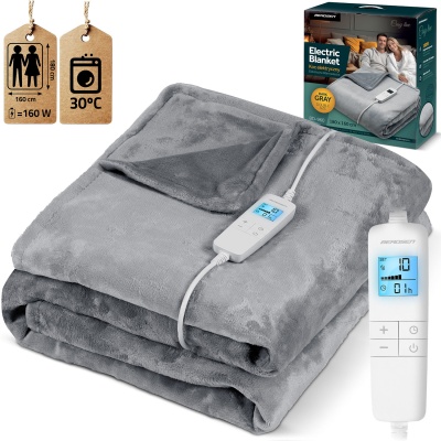 Berdsen plišana električna deka 180 x 160 cm, siva