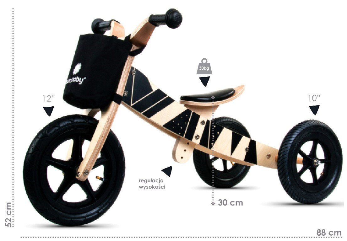 U setu dobijete sve potrebno za transformaciju bicikla – kotače (male i velike), set ključeva i upute.