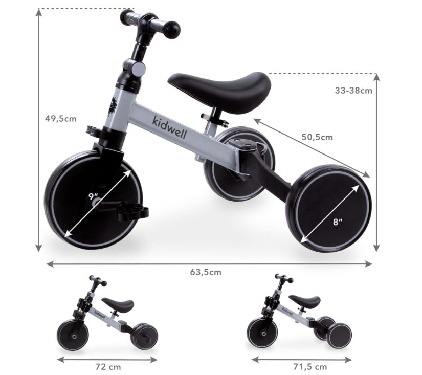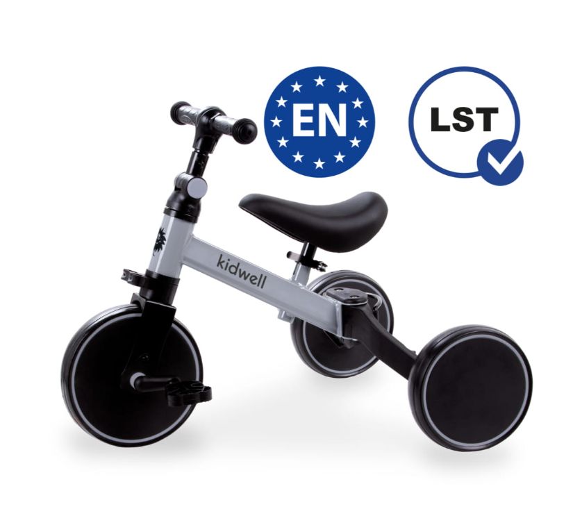 • jednostavan i brz način pretvaranja bicikla za vožnju u bicikl za ravnotežu ili tricikl bez potrebe za alatima