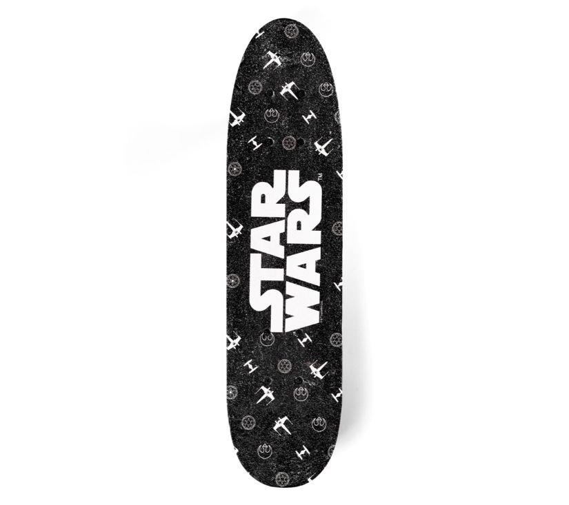 Drveni skateboard ukrašen trendovskim licencnim uzorcima Disneya, Marevela i Star Wars-a. Idealan je za korištenje na pločnicima, trgovima i urbanim uličicama. Daska je izrađena od izdržljivog drveta i ima neklizajuću površinu. Zbog male veličine i težine lako se prenosi.