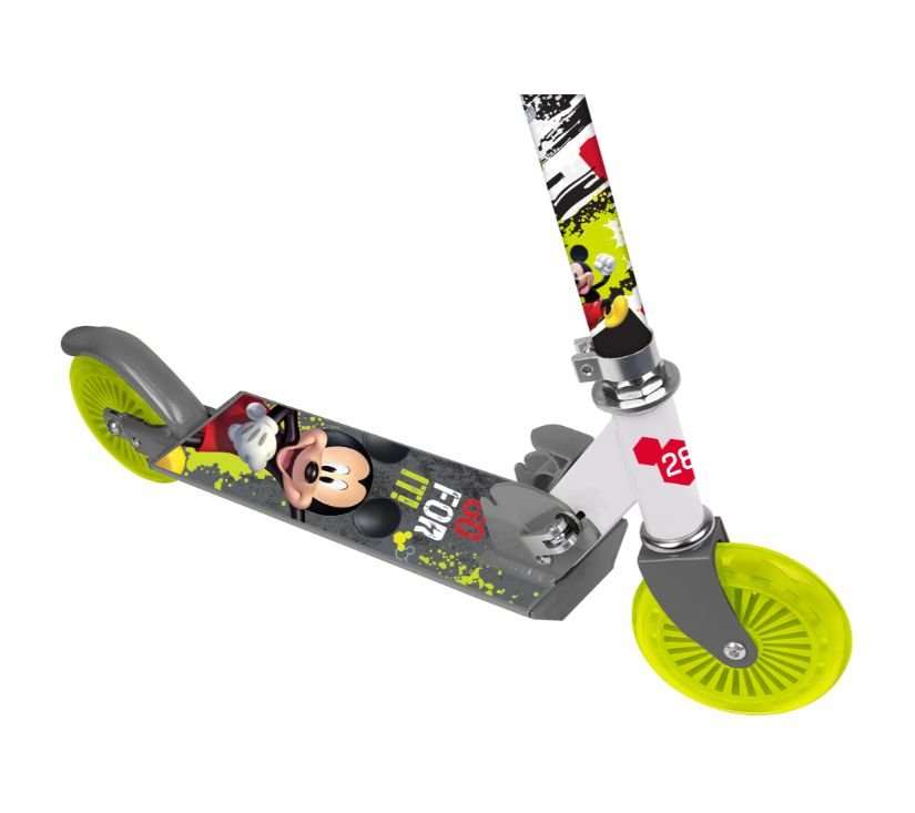 Dječji romobil na dva kotača savršen je za igru na otvorenom. Šareni likovi iz Disneyjevih crtića učinit će vožnju zabavnom za vaše dijete. Veliki raspon podešavanja volana olakšava vožnju većoj ili manjoj djeci. Gumene ručke povećavaju udobnost, platforma je ojačana neklizajućim materijalom koji štiti od klizanja. Poliuretanski kotači povećavaju amortizaciju prilikom vožnje po neravnim površinama, a visokokvalitetni ležajevi ABEC-7 osiguravaju glatku vožnju. Romobil ima nožnu kočnicu za povećanu sigurnost i jednostavan praktičan sustav preklapanja.