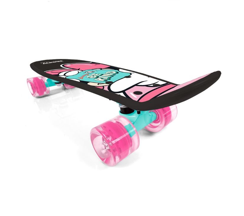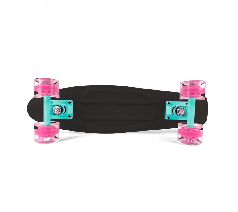 Penny board je trenutno najpopularniji model skateboarda. Idealan je za korištenje na pločnicima, trgovima i urbanim uličicama. Široki i mekani poliuretanski kotači potiskuju vibracije osiguravajući udobnost tijekom vožnje. Visokokvalitetne precizne i lagane ABEC-7, jamstvo uglađenosti i brzine tijekom vožnje. Ploča je izrađena od izdržljive plastike, neklizajući sloj će osigurati sigurnu upotrebu.