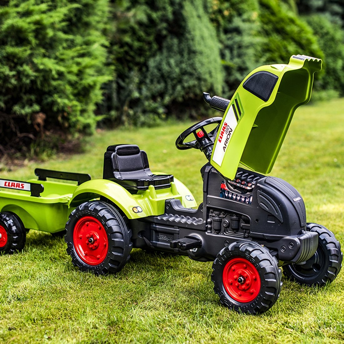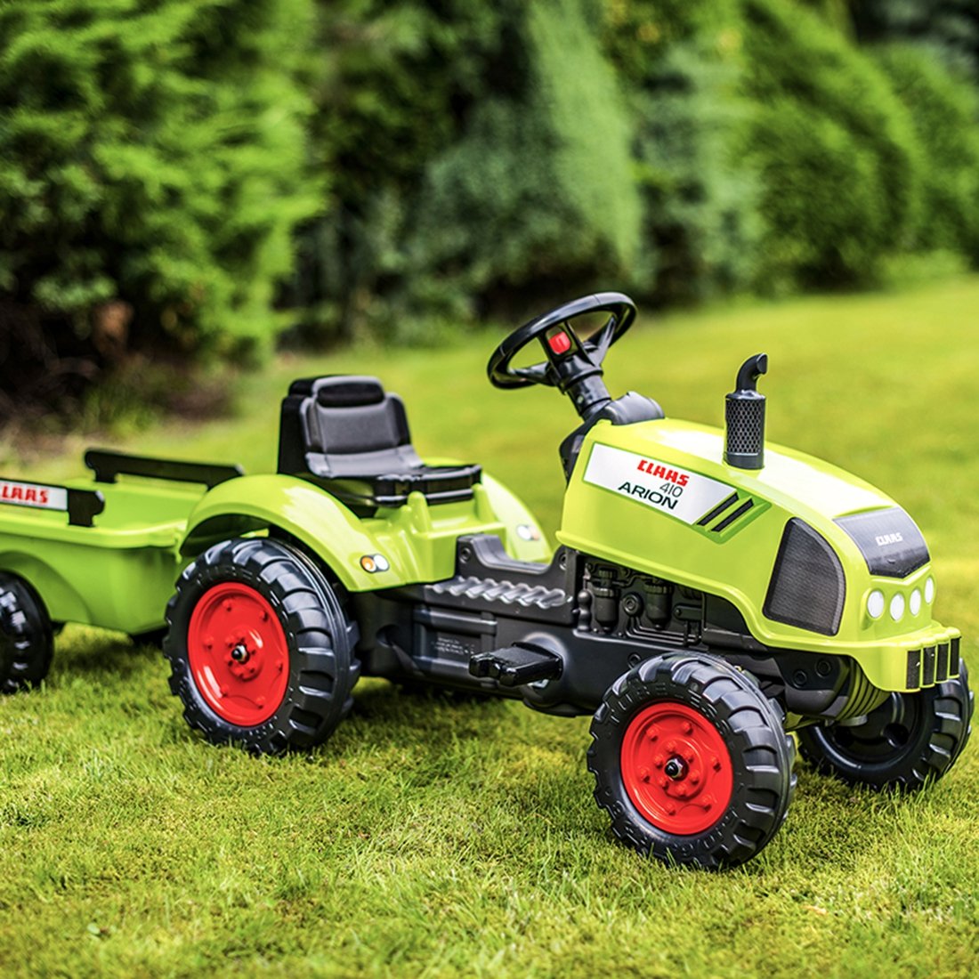 Traktor na pedale CLAAS s prikolicom tvrtke FALK ostvaren je san mnogih malih traktorista . Pažljivo izrađena, s pažnjom na najmanji detalj! Nijedan farmer ne bi prezreo takvo što. Vozilo je izrađeno od najkvalitetnijih materijala i namijenjeno je djeci od 2 godine naviše. Vozilo je opremljeno odvojivom prikolicom s panelima i upravljačem sa sirenom . Kotači traktora izrađeni su od visokokvalitetne plastike.