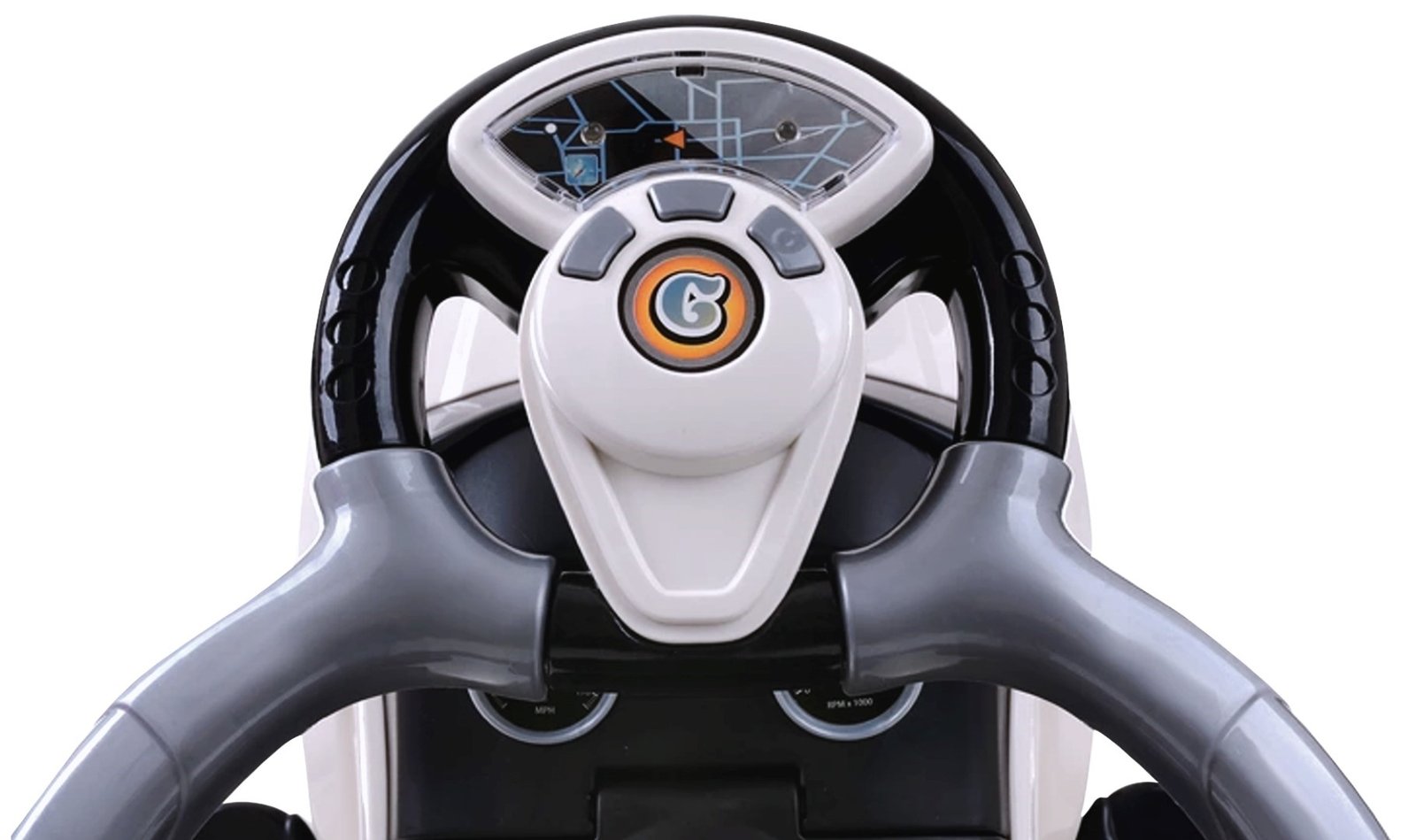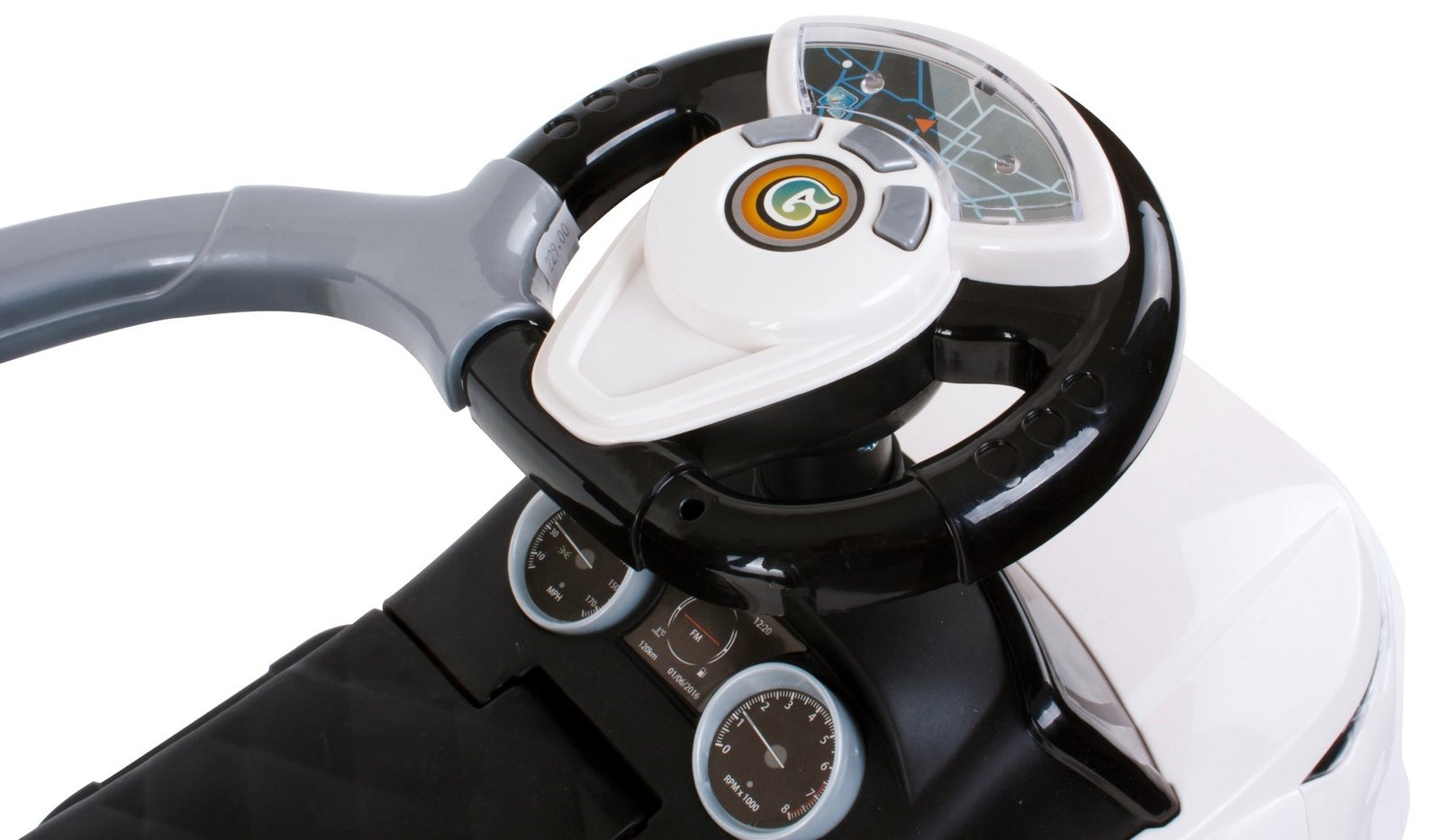 Ride-on je opremljen upravljačem kotačić sa zvukovima, koji dodaje realizam zabavi i potiče dijete na interakciju s igračkom