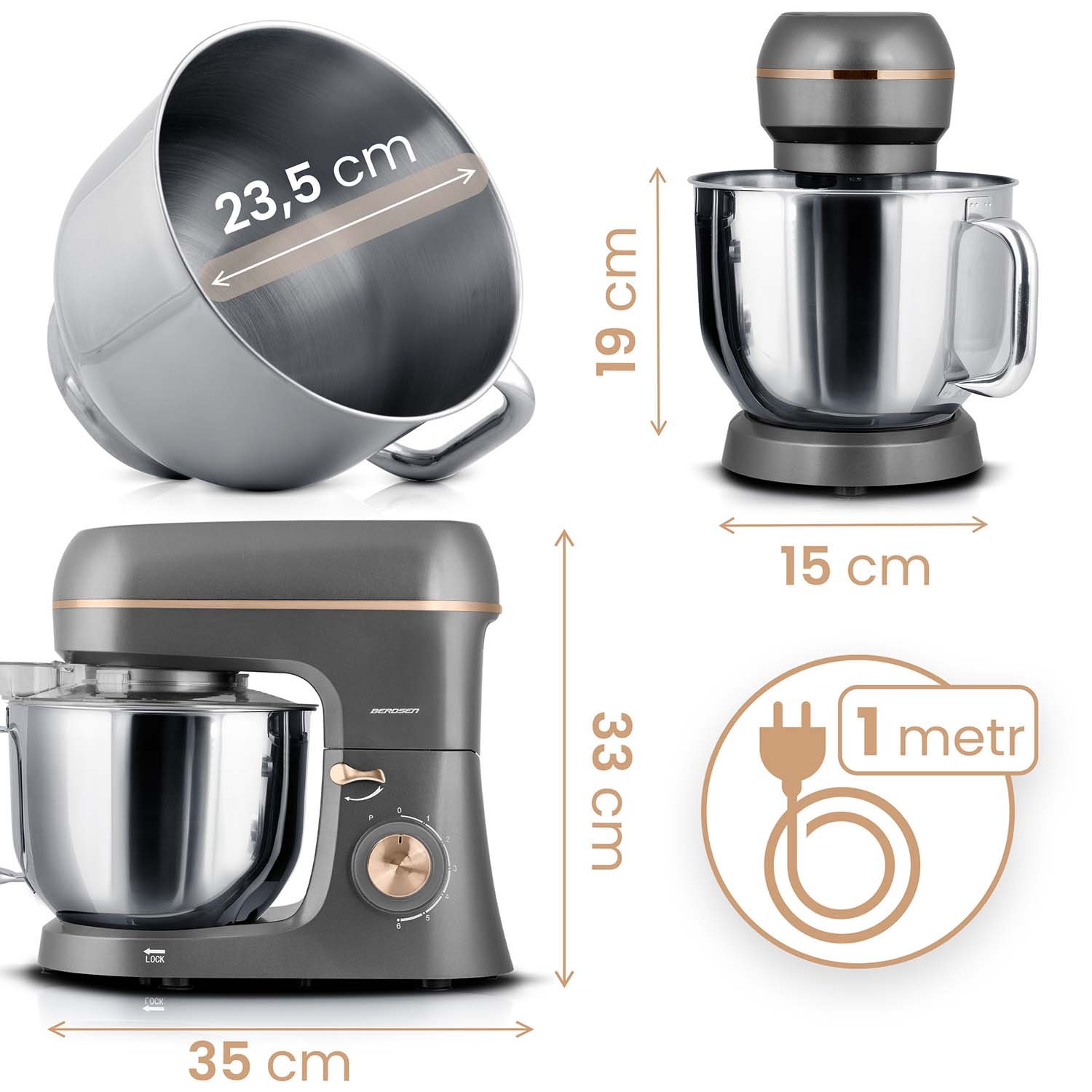 Od lagane kreme, preko elastičnog tijesta s kvascem, do guste čokoladne glazure – Berdsen planetarni mikser od 1400 W jamči savršene rezultate, bez obzira na recept.