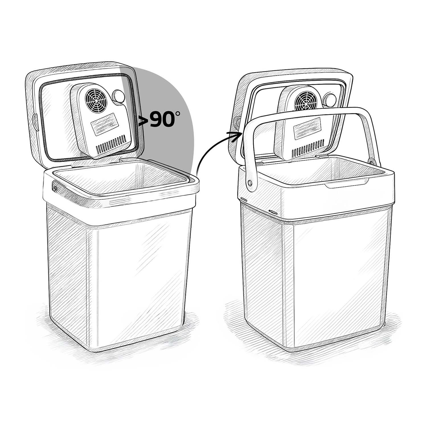 Hladnjak ima praktičan sustav zaključavanja – kada je ručka u okomitom položaju (položaj za nošenje), poklopac ostaje zatvoren. To sprječava slučajno otvaranje tijekom transporta.