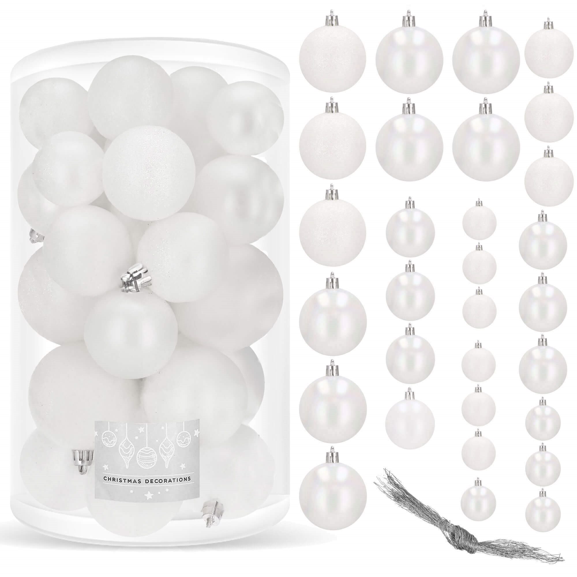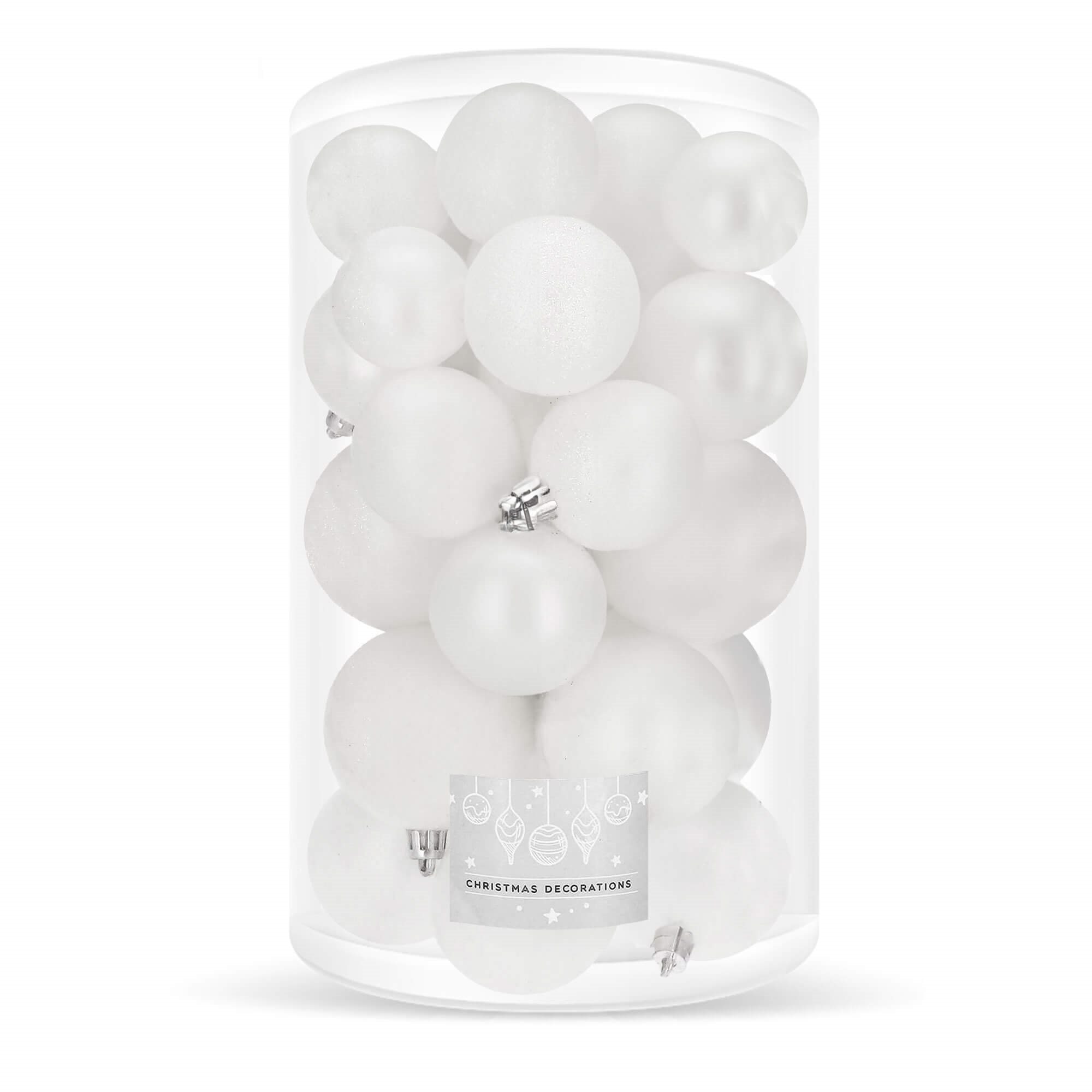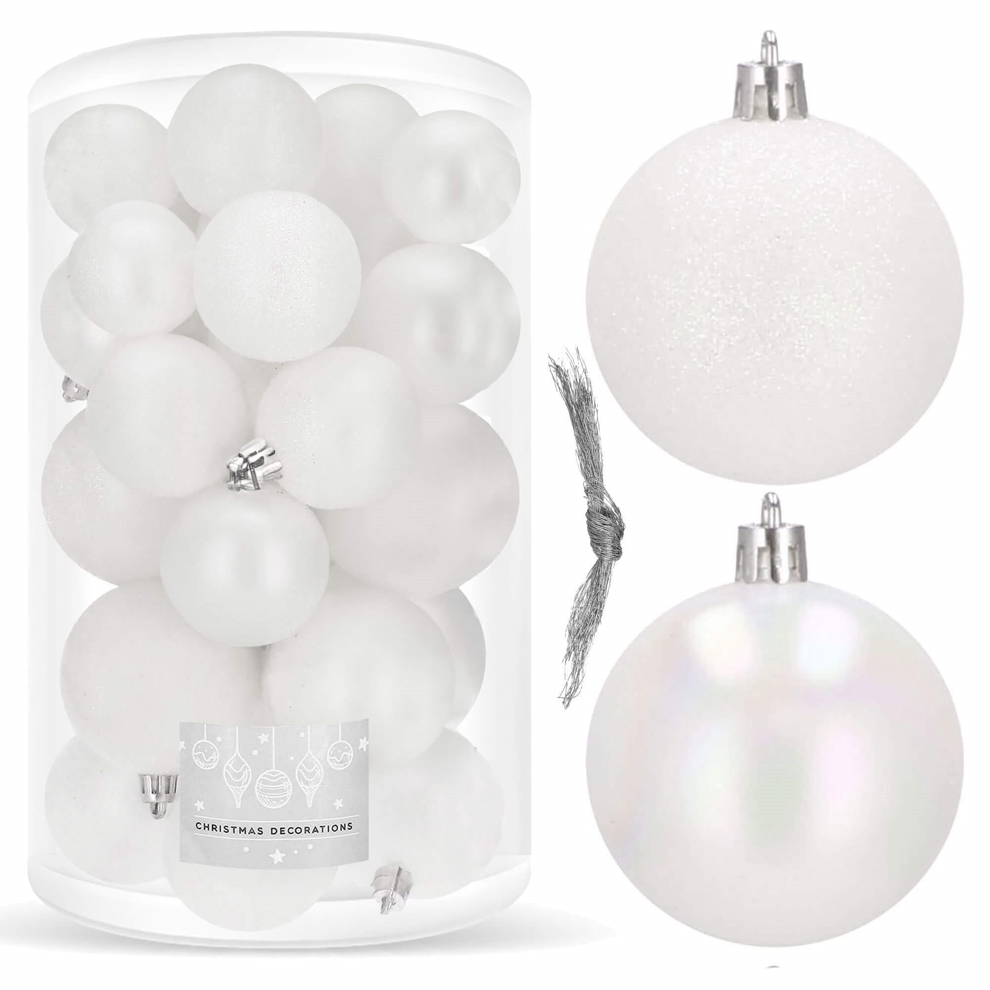 Božićne kuglice 4 / 5 / 6 cm – set 30 komada bijela