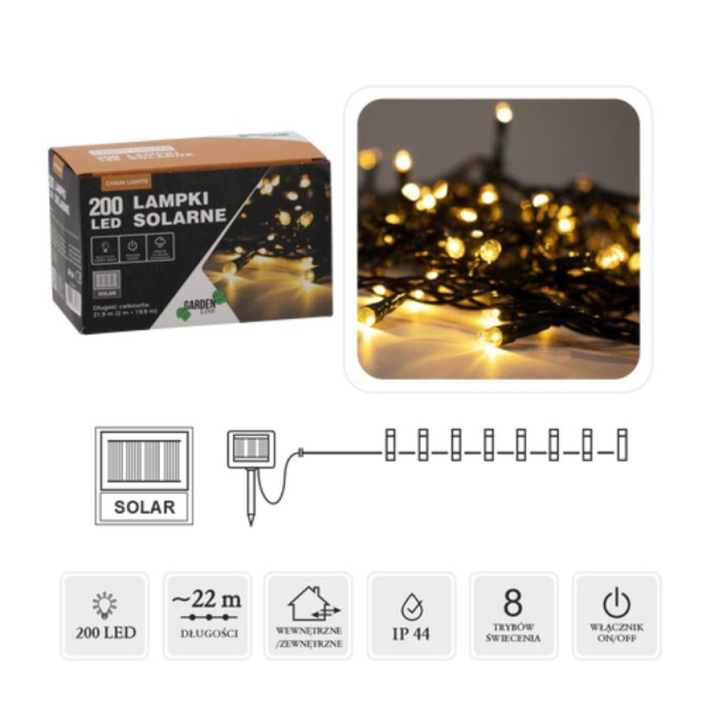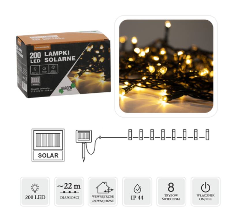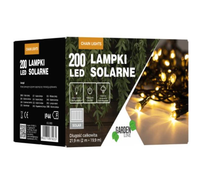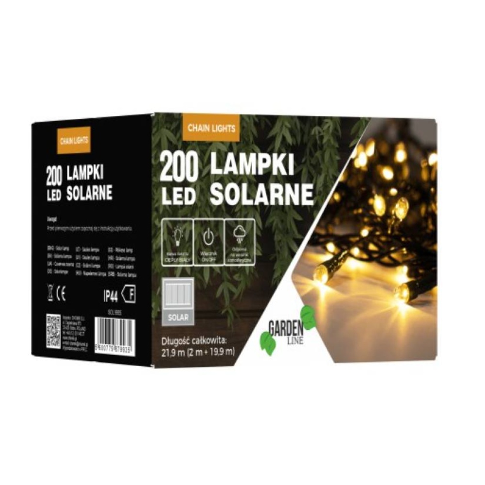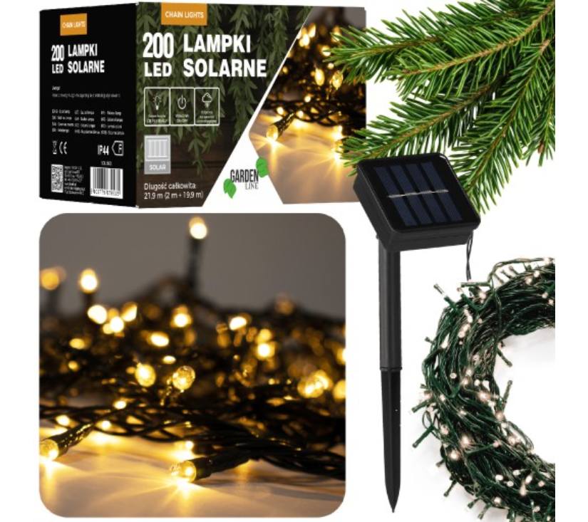 Praktična i učinkovita solarna LED svjetla s 200 dioda u toplo bijeloj boji, savršeno osvjetljavaju vrt, terasu ili balkon. S duljinom svjetla od cca. 20 m i zelenom izolacijom žice, prekrasno se stapaju s vegetacijom, stvarajući čarobnu atmosferu. Opremljena timerom s 8 funkcija i vodootpornošću IP44, otporna su na vremenske uvjete i idealna za vanjsko uređenje. Solarna energija pruža potpunu neovisnost o električnim utičnicama i energetski učinkovit rad.