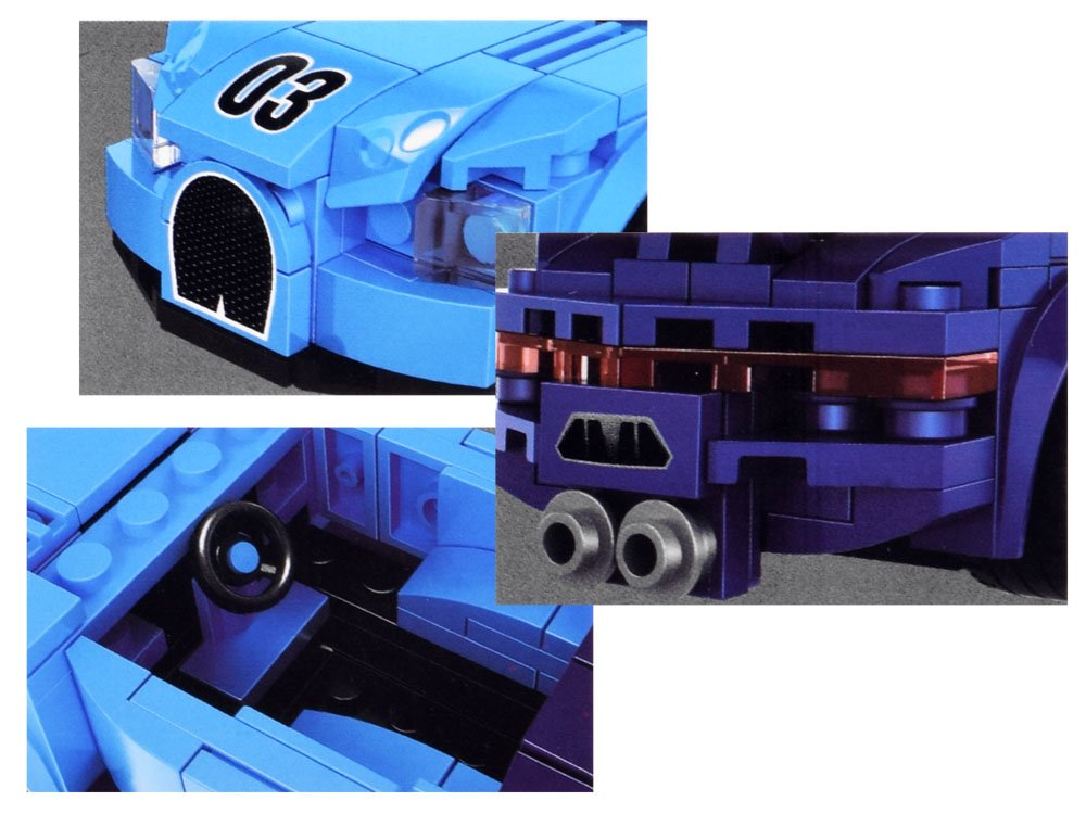 Tehnički, plastični blokovi omogućit će vam da izgradite svoj sportski automobil iz snova. Blokovi se jednostavno spajaju, sigurni su i izdržljivi. Naljepnice za auto koje se nalaze u setu dat će sjaj konačnom efektu.