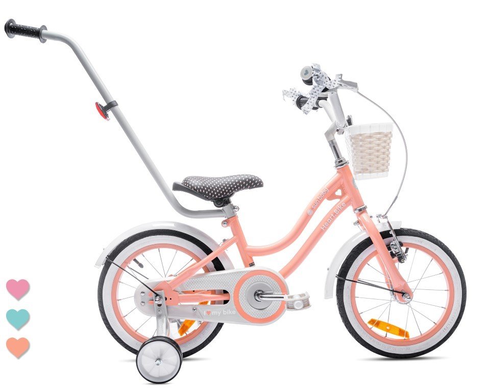 Oprema uključuje: prednji i stražnji blatobrani, profilirano sjedalo s ručkom za nošenje, odvojive bočne kotače, štitnik lanca, kočnicu prednjeg kotača, zvono, prednju košaru i gurač.