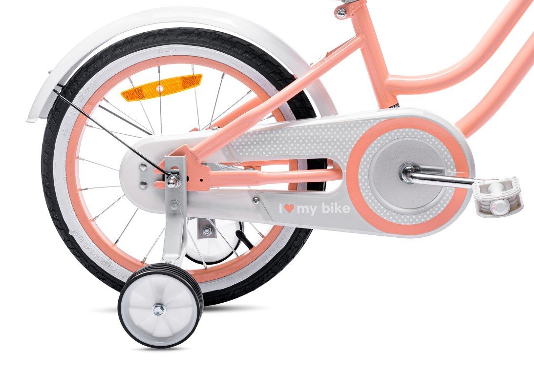 Oprema uključuje: prednji i stražnji blatobrani, profilirano sjedalo s ručkom za nošenje, odvojive bočne kotače, štitnik lanca, kočnicu prednjeg kotača, zvono, prednju košaru.