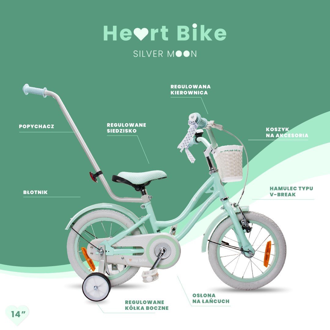Dječji bicikl guralica Heart Silver Moon 14″ mint