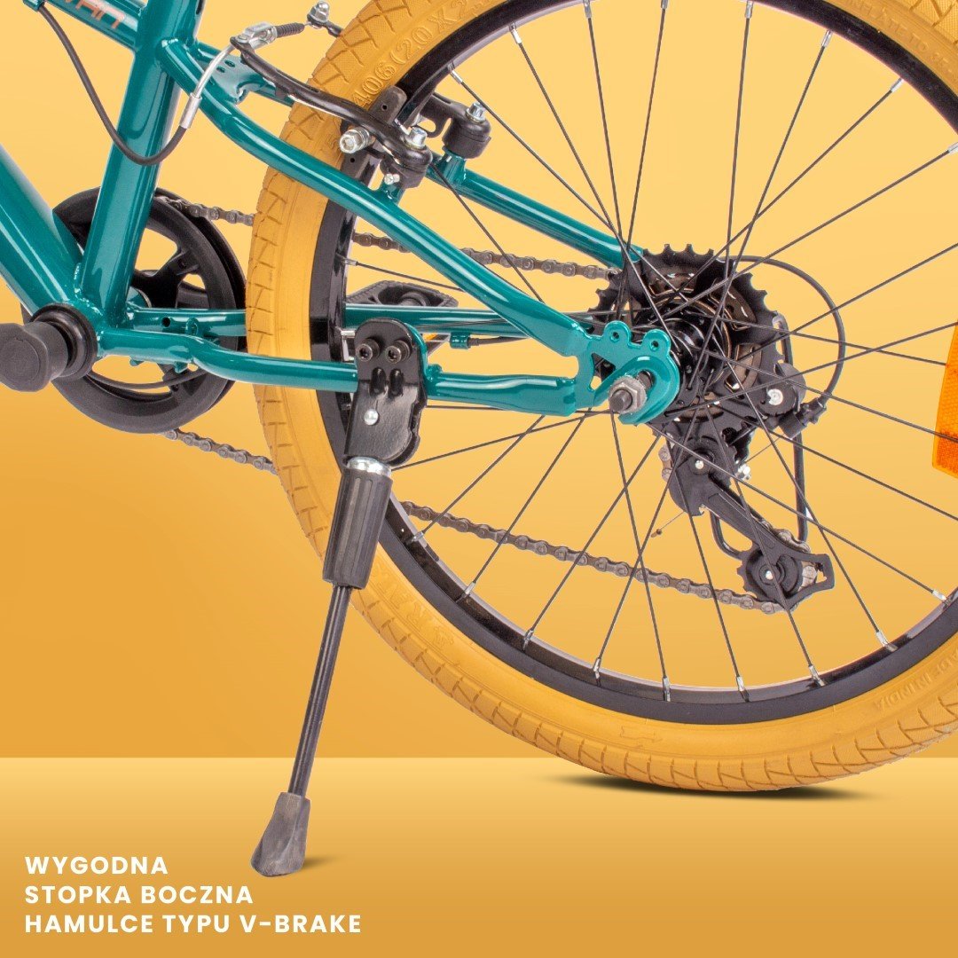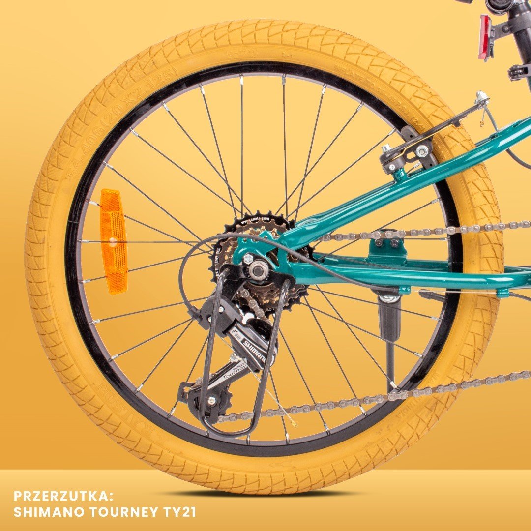 Bicikl je opremljen 20-inčnim kotačima, osiguravajući optimalne proporcije i stabilnost za djecu. Manja veličina kotača čini bicikl lakšim za upravljanje djeci, posebno onima koji tek uče voziti. To djeci daje veće samopouzdanje i omogućuje im brži razvoj biciklističkih vještina
