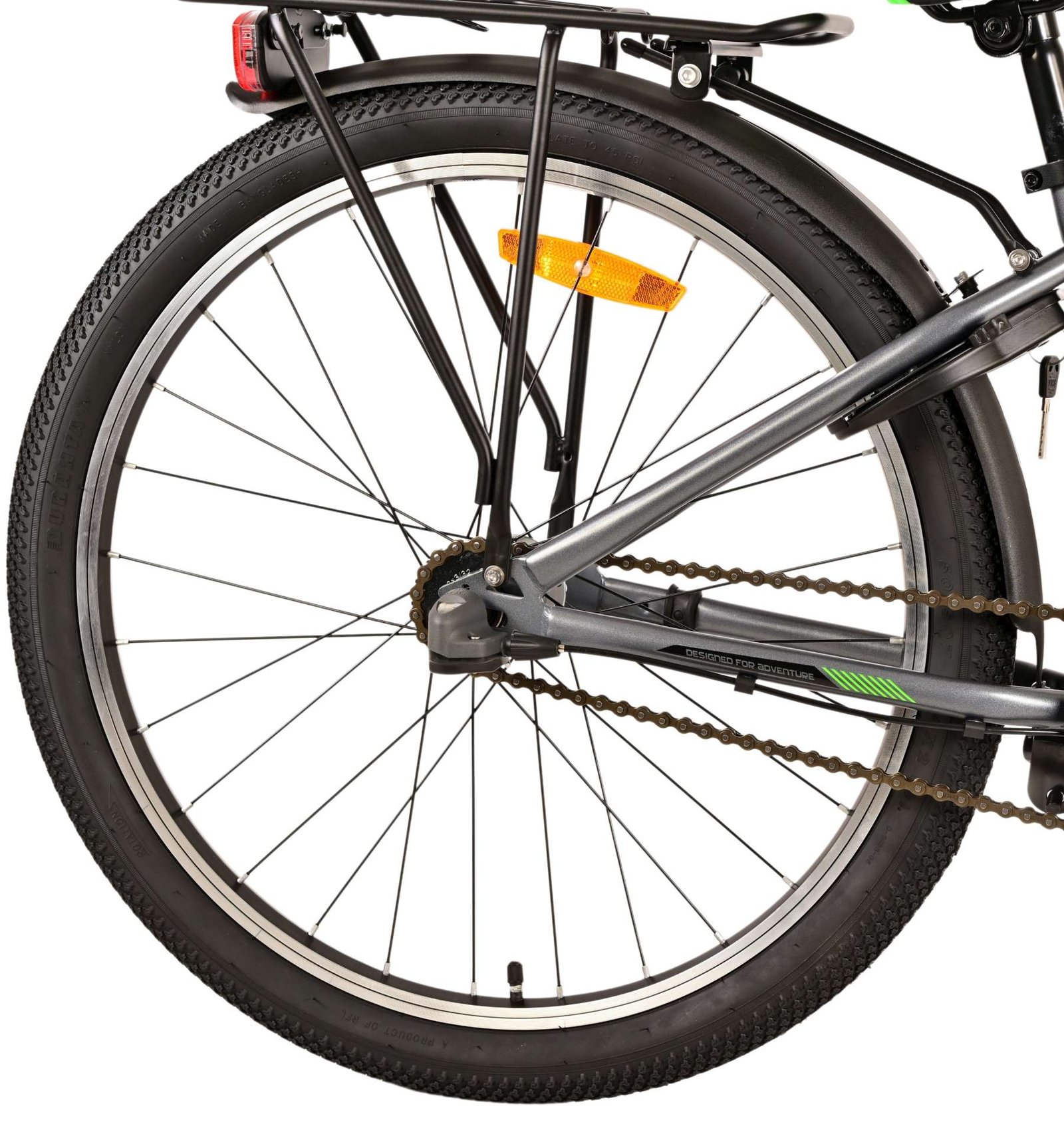 Sigurnost je na prvom mjestu! Dakle, ovaj cool bicikl ima ručnu kočnicu, nožnu kočnicu, Shimano Nexus 3 brzine, katadioptere (mačje oči) u kotačima i svijetlo na baterije sprijeda i straga. Mislilo se i na udobnost. Prekrasan tamno sivi bicikl Volare ima praktičan stražnji nosač za nošenje svih vaših stvari bez napora, udobno mekano sjedalo, nogicu kako bi vaš bicikl uvijek uredno stajao i čvrstu bravu. Kako biste što dulje uživali u biciklu, sjedalo je podesivo po visini, tako da bicikl još dulje raste s djetetom. Imajte na umu da upravljač nije podesiv po visini!