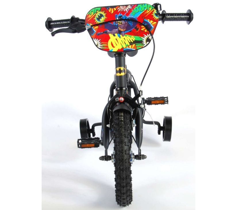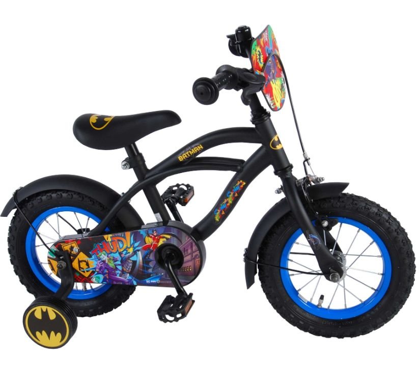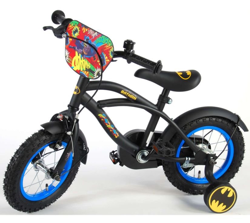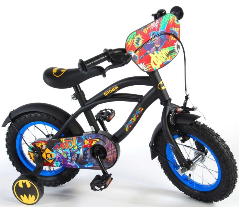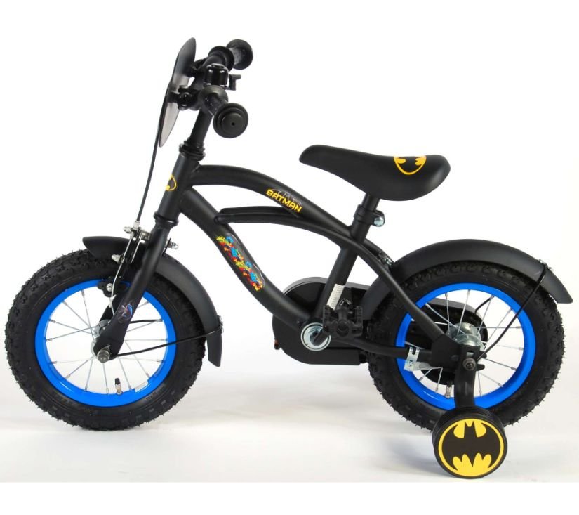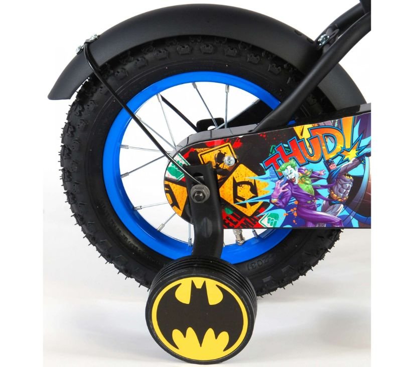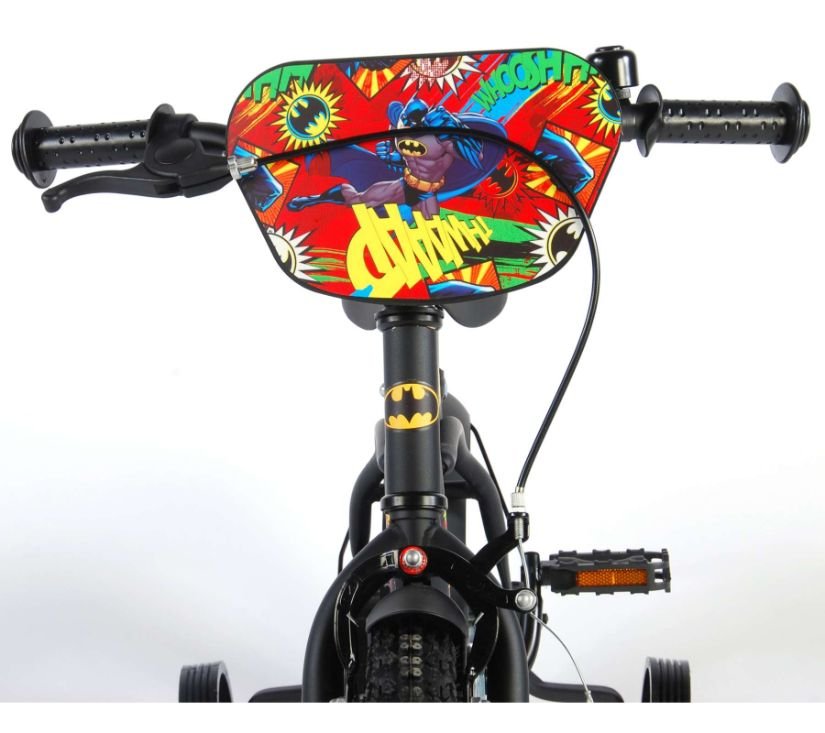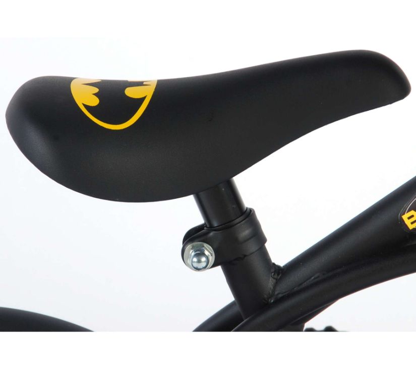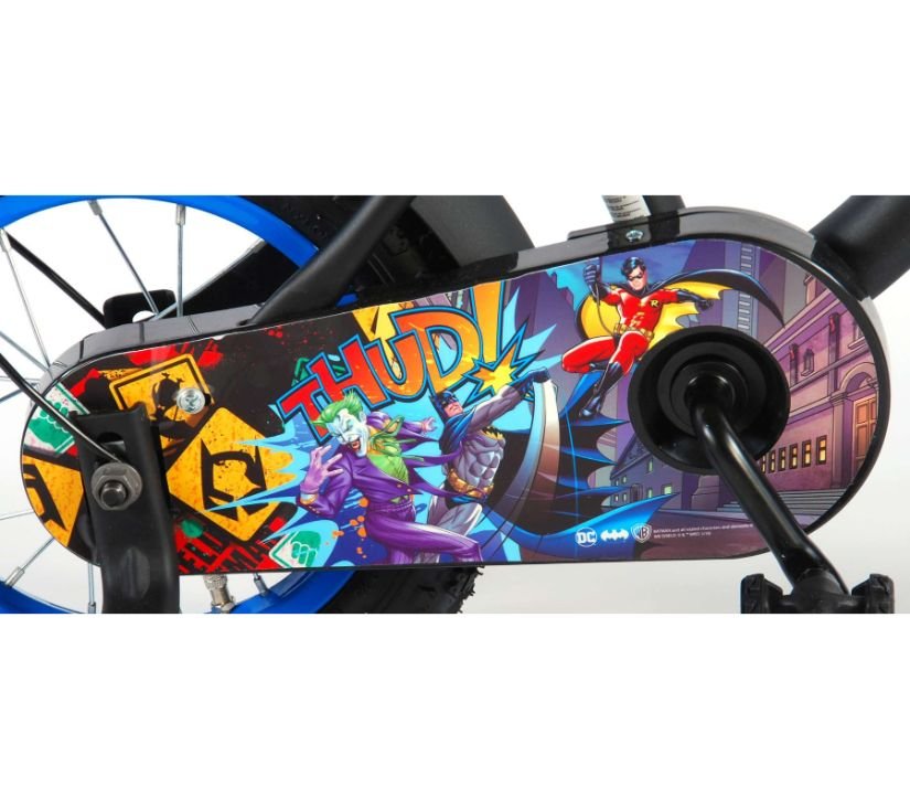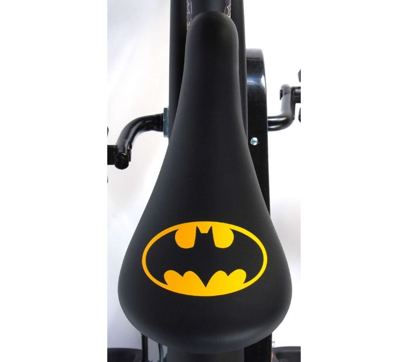 Sigurnost je na prvom mjestu! Zato ovaj cool bicikl ima ručnu i nožnu kočnicu te zatvoreno kućište lanca. Osim toga, bicikl ima odvojive pomoćne kotače za brzo učenje, zvono i reflektore u pedalama. Prekrasan crni Batman bicikl s plavim detaljima ima iznimno dugačke blatobrane koji zaustavljaju svu prljavštinu, ugodno meko sjedalo i jedinstveni okvir koji može izdržati udarce. Kako biste što duže uživali u biciklu, sjedalo i upravljač su podesivi po visini. Ukratko: vrhunski bicikl u kojem će vaše dijete uživati godinama!