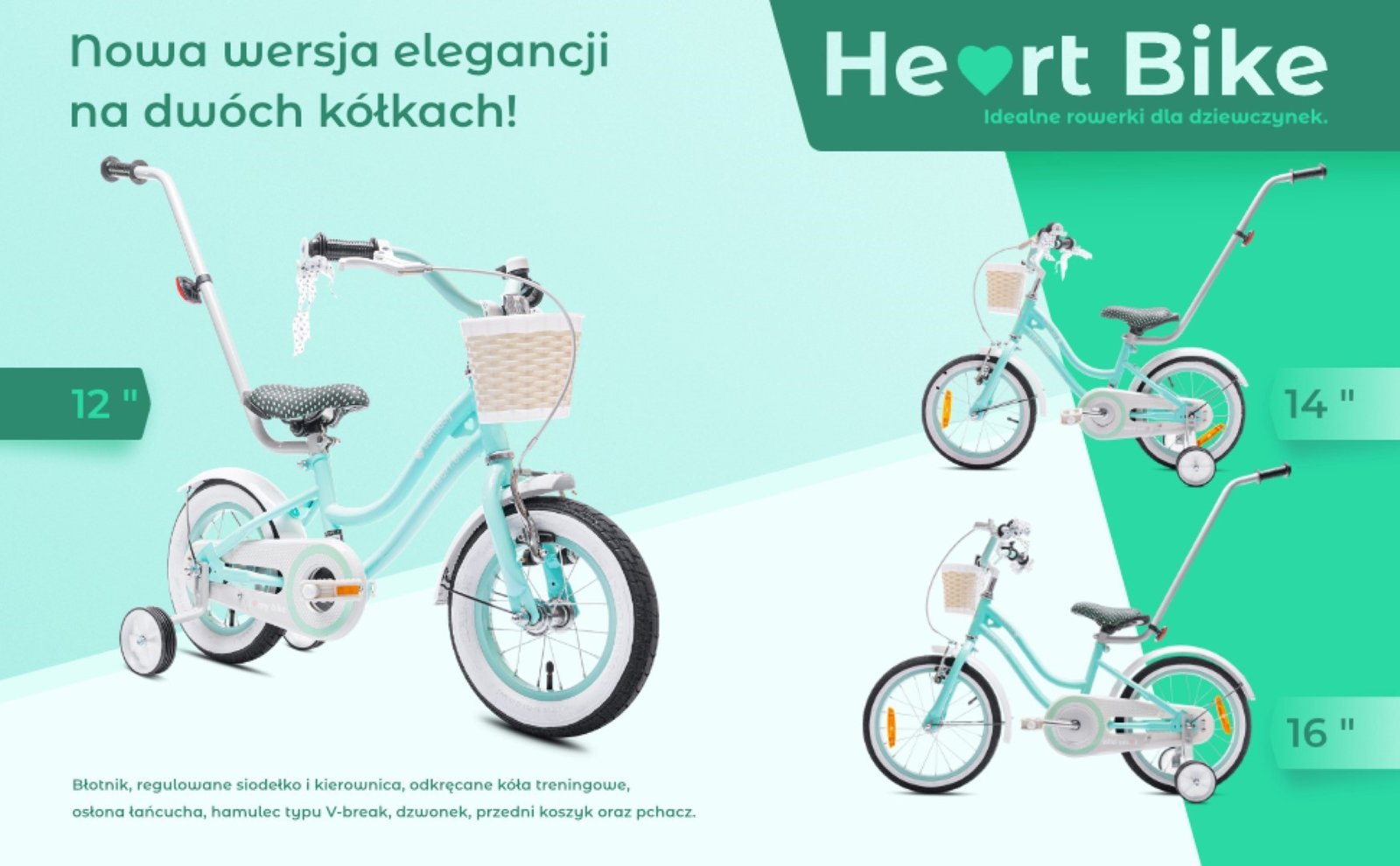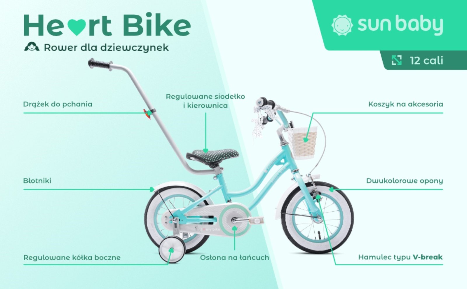 Dječji bicikl guralica Heart 12″ mint