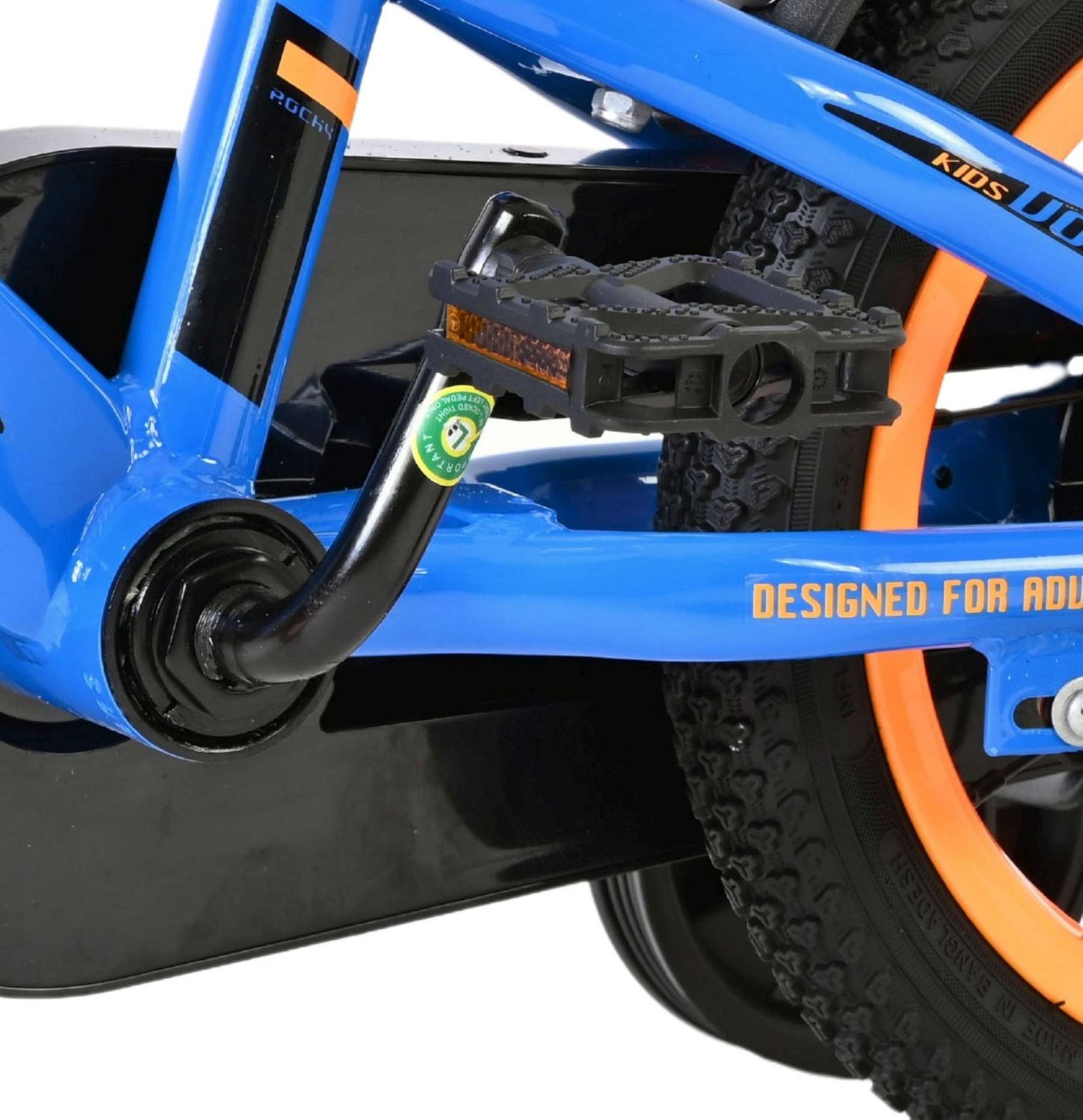 Sigurnost je najvažnija! Zato ovaj cool bicikl ima ručnu kočnicu i nožnu kočnicu, zatvoreni štitnik lanca i uklonjive pomoćne kotače. Također ima zabavno zvono. Vodilo se računa i o udobnosti. Prekrasan plavi Volare bicikl s narančastim detaljima ima luksuzno mekano sjedalo, elegantan okvir koji može izdržati nekoliko udaraca i ekstra duge blatobrane koji sprječavaju ulazak sve te prljavštine. Kako biste mogli uživati u biciklu što je dulje moguće, ima ekstra dugu cijevi sjedala, što mu omogućuje da još dulje raste s vašim djetetom. Dolazi sa svim montažnim priborom potrebnim za sastavljanje!