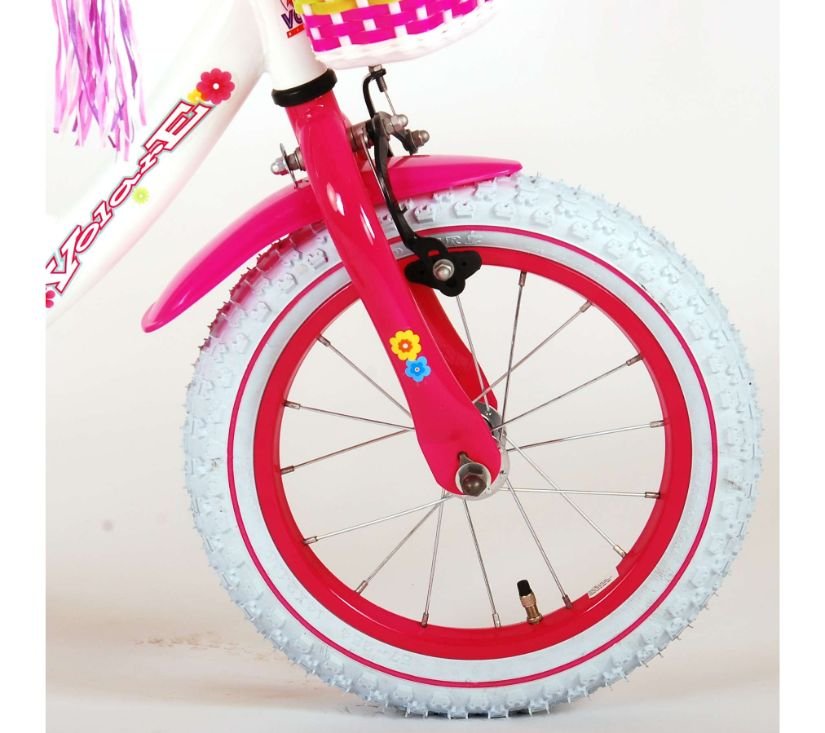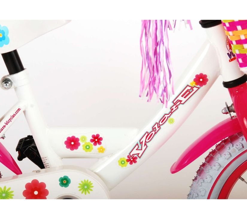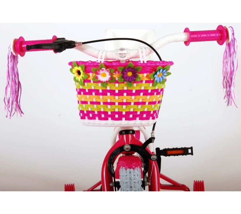 Sigurnost je na prvom mjestu! Zato ovaj cool bicikl ima ručnu i nožnu kočnicu te zatvoreni kućište lanca. Osim toga, bicikl ima odvojive pomoćne kotače i lijepo zvono. Lijepi bicikl ima sjedalo za lutku ispod sjedala, košaru za nošenje svih vaših stvari, super čvrst okvir i zabavne ukrase na upravljaču. Kako biste što duže uživali u biciklu, sjedalo i upravljač su podesivi po visini. Ukratko: vrhunski bicikl u kojem će vaše dijete uživati godinama!