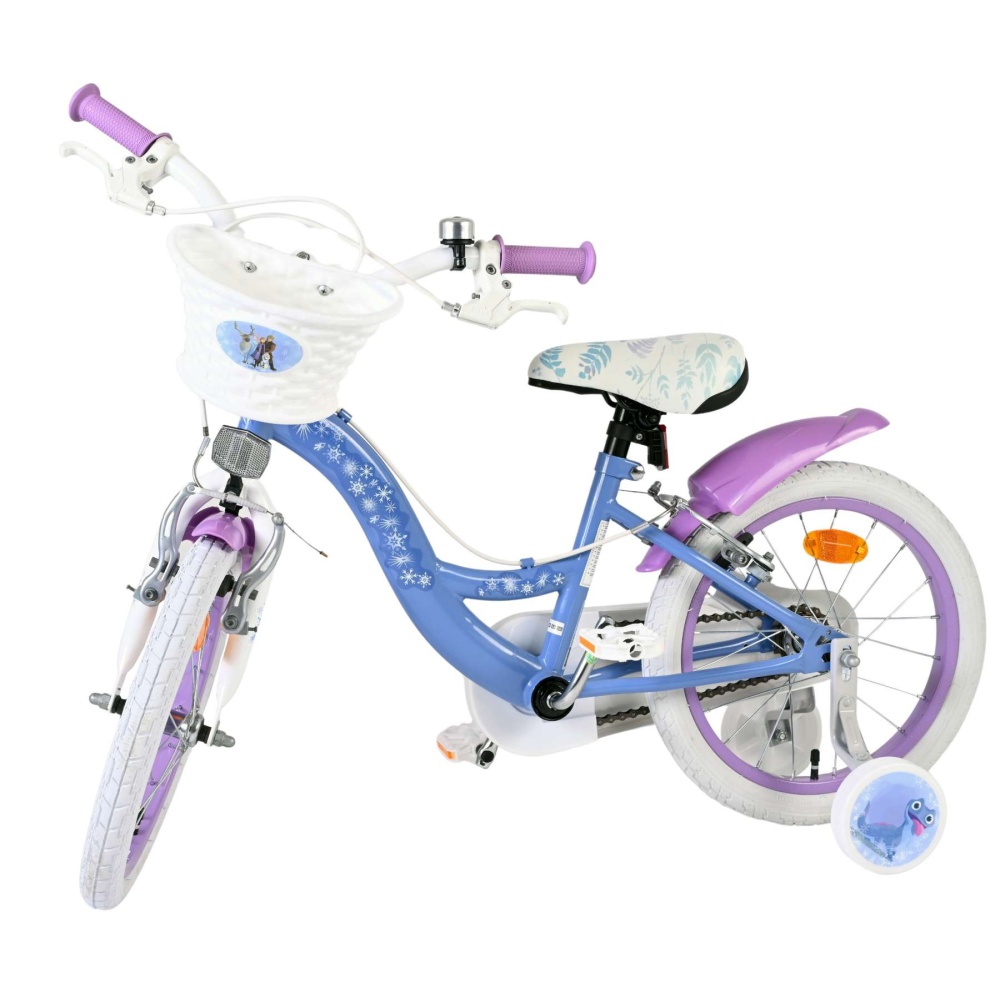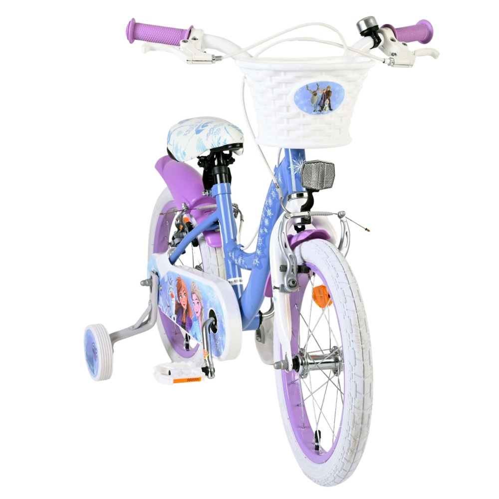 Sigurnost je najvažnija! Zato ovaj cool bicikl ima dvije ručne kočnice (BEZ KOČNICE ZA NOŽNO KOČENJE) i uklonjive pomoćne kotače. Prekrasni plavo-ljubičasti Frozen bicikl dolazi s košarom. Kako biste mogli što dulje uživati u biciklu, sjedalo i upravljač su podesivi po visini.