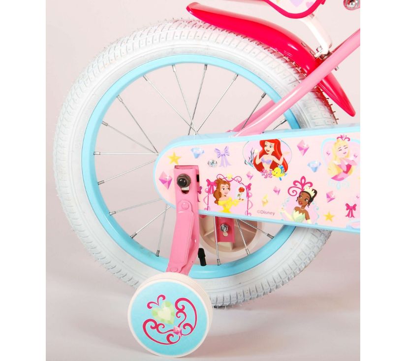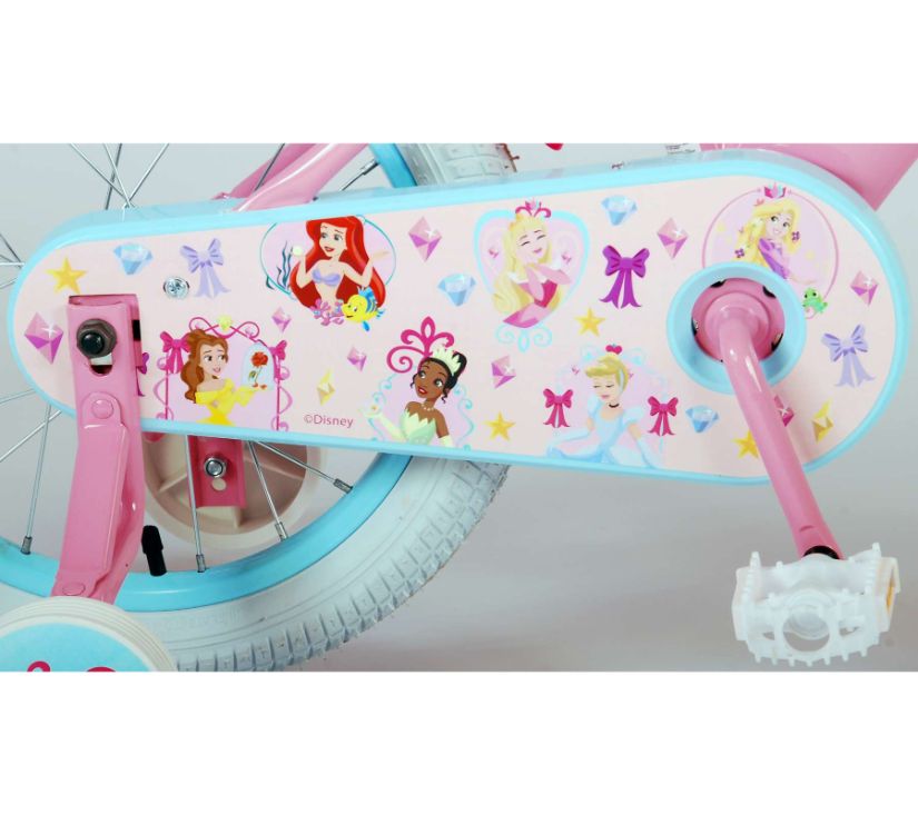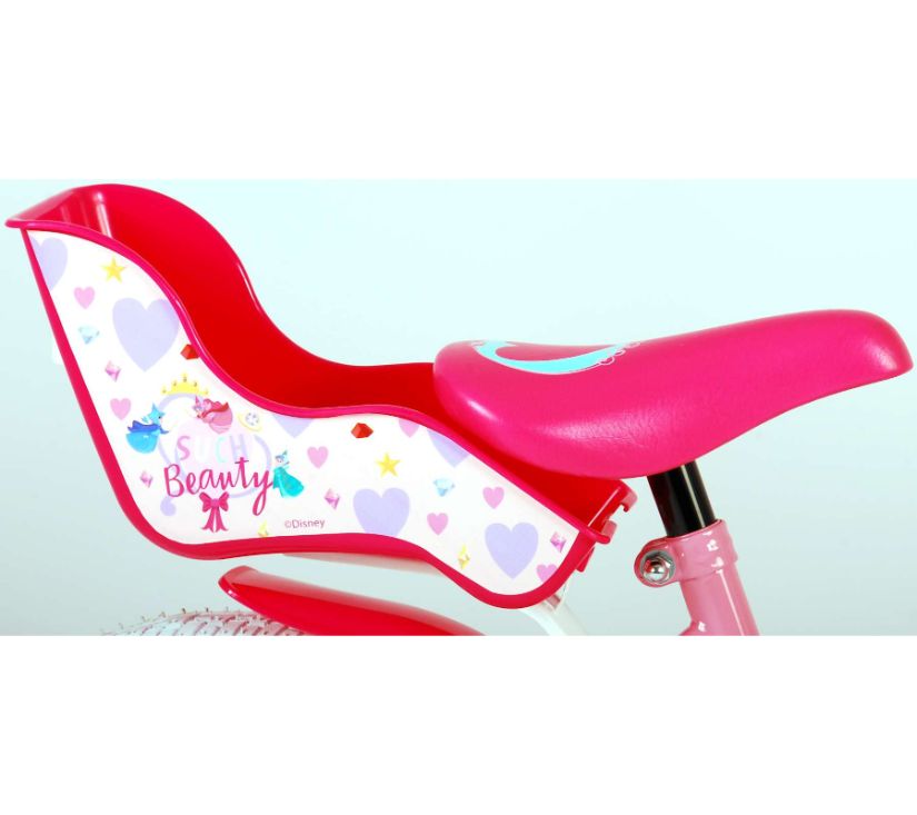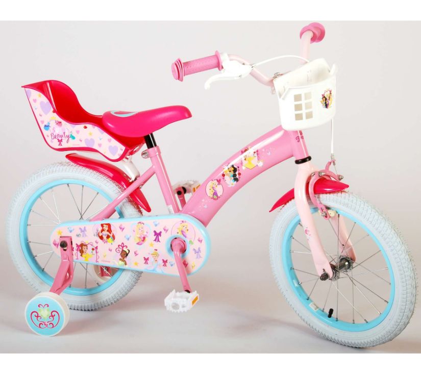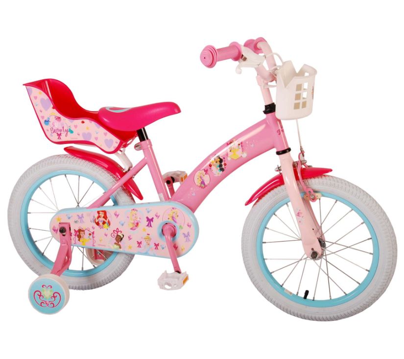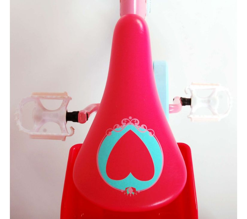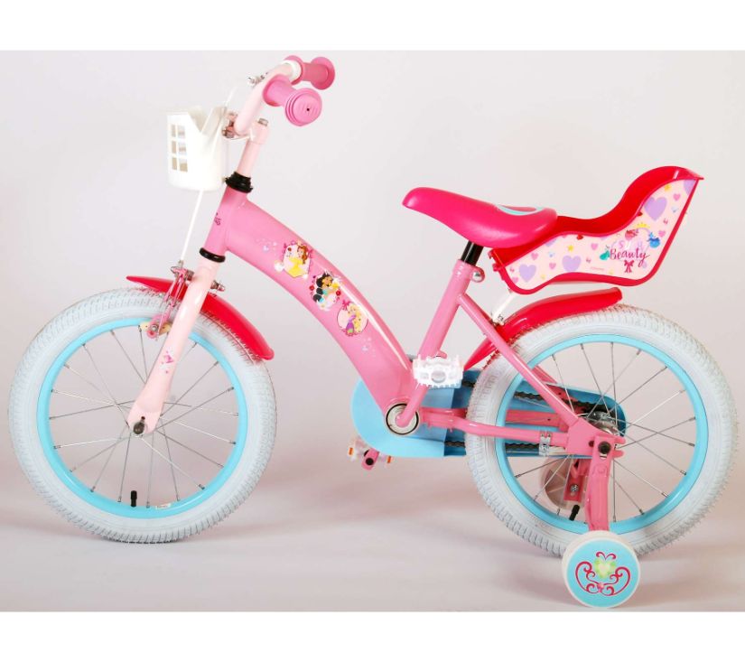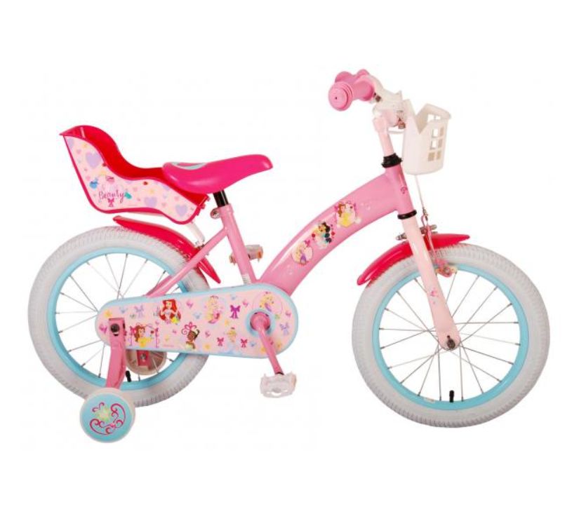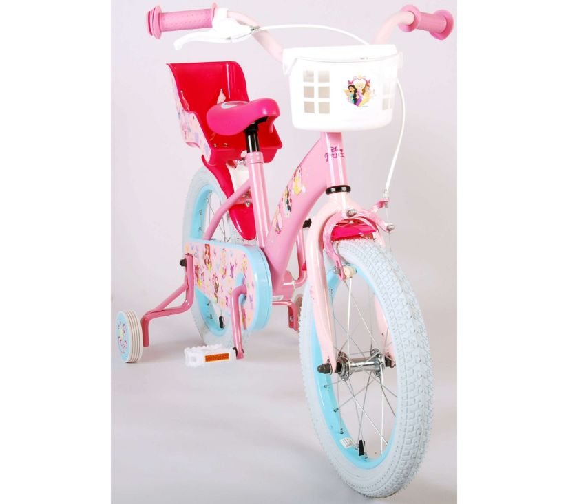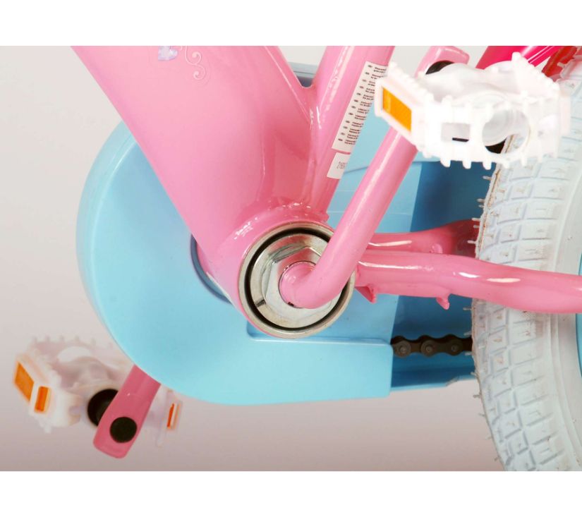 Sigurnost je na prvom mjestu! Zato ovaj cool bicikl ima ručnu kočnicu te zatvoreno kućište lanca. Osim toga, bicikl ima uklonjive pomoćne kotače za brzo učenje vožnje. Mislilo se i na udobnost. Lijepi bicikl ima meko sjedalo, sjedalo za lutku ispod sjedala i košaru za nošenje svih vaših sitnica. Kako biste što duže uživali u biciklu, sjedalo i upravljač su podesivi po visini. Ukratko: bicikl vrhunske kvalitete po super cijeni!