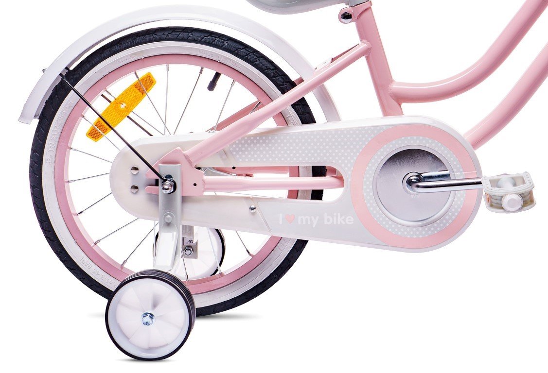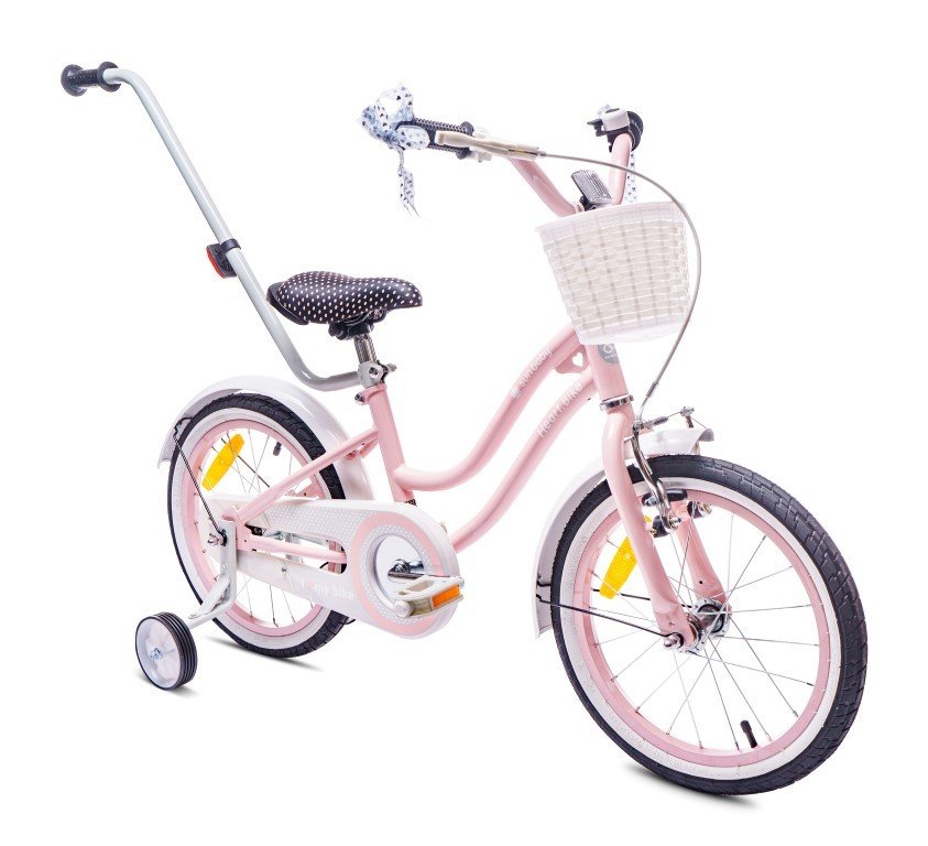 Oprema uključuje: prednji i stražnji blatobrani, profilirano sjedalo s ručkom za nošenje, odvojive bočne kotače, štitnik lanca, kočnicu prednjeg kotača, zvono, prednju košaru.