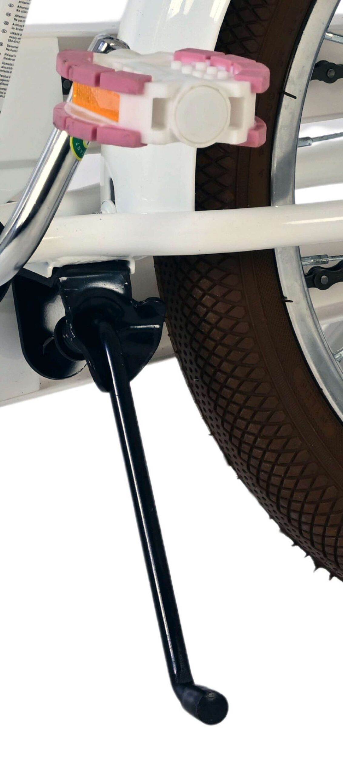 Sigurnost je najvažnija! Zato ovaj cool bicikl nema nožnu kočnicu, već dvije ručne kočnice, uklonjive pomoćne kotače i zatvoreni štitnik lanca. Bicikl ima reflektore na prednjoj, stražnjoj strani i na kotačima. Također je uzeto u obzir udobnost. Prekrasan bijeli Volare bicikl ima udobno, mekano sjedalo, sjedalo za lutku, vesele ukrase na upravljaču i praktičnu pletenu košaru. Kako biste mogli što dulje uživati u biciklu, sjedalo i upravljač su podesivi po visini. Dolazi sa svim potrebnim montažnim priborom za sastavljanje bicikla!