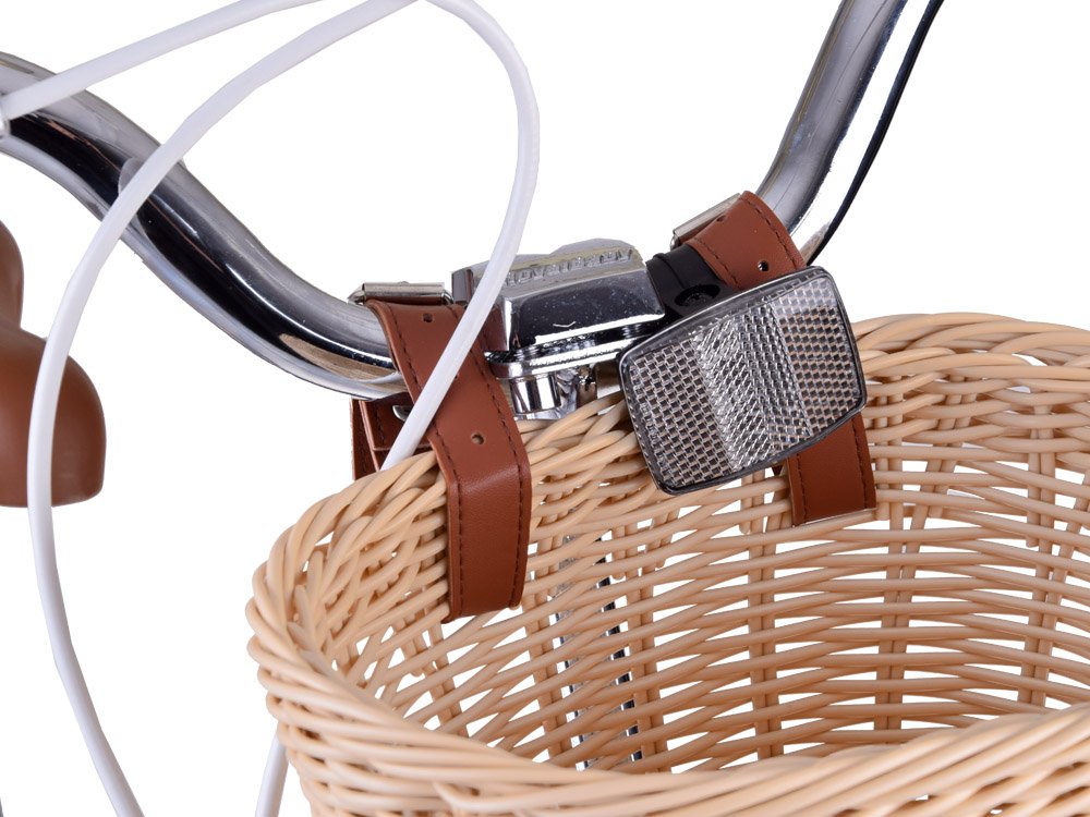 Stabilan upravljač: Širok i ergonomičan, jamči potpunu kontrolu nad biciklom. Upravljač ima mjesto za pričvršćivanje elegantne, prostrane košare koja će vam omogućiti da ponesete potrebne stvari sa sobom na vožnju. Mekani, izdržljivi gumeni rukohvati osiguravaju čvrsto držanje i udobnost tijekom vožnje. Zvono pričvršćeno na upravljač omogućit će vam da sigurno upozorite pješake tijekom vožnje.