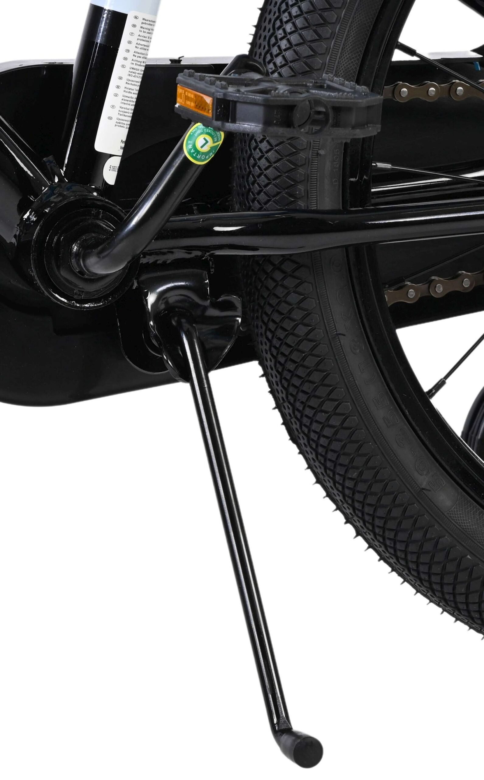 Sigurnost je najvažnija! Čvrsti čelični okvir i njegova cool plavo-crna shema boja daju mu vrlo sportski izgled. S bocom za vodu u praktičnom držaču za bocu, vaše će dijete uvijek imati nešto za piti. Blatobrani štite od prskanja. Za usporavanje, bicikl ima i ručnu i nožnu kočnicu . Štitnik lanca je zatvoren kako bi zaštitio male prste. Bicikl ima pomoćne kotače i čvrsti oslonac.