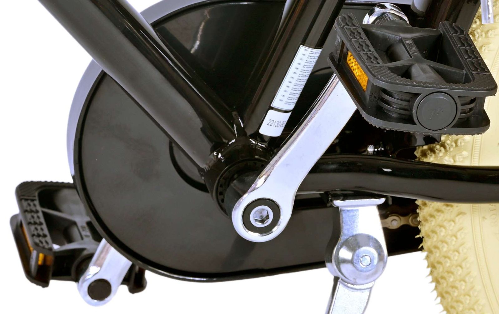 Sigurnost je na prvom mjestu! Zato ovaj cool bicikl ima ručnu kočnicu i nožnu kočnicu, odvojive pomoćne kotače i zatvoreno kućište lanca. Osim toga, bicikl ima prednja i stražnja svjetla (STVO testirano) i lijepo zvono. Mislilo se i na udobnost. Prekrasan crni Volare bicikl ima praktičan prednji nosač, stražnji nosač integriran u okvir i luksuzno mekano sjedalo. Kako biste što duže uživali u biciklu, sjedalo i upravljač su podesivi po visini.