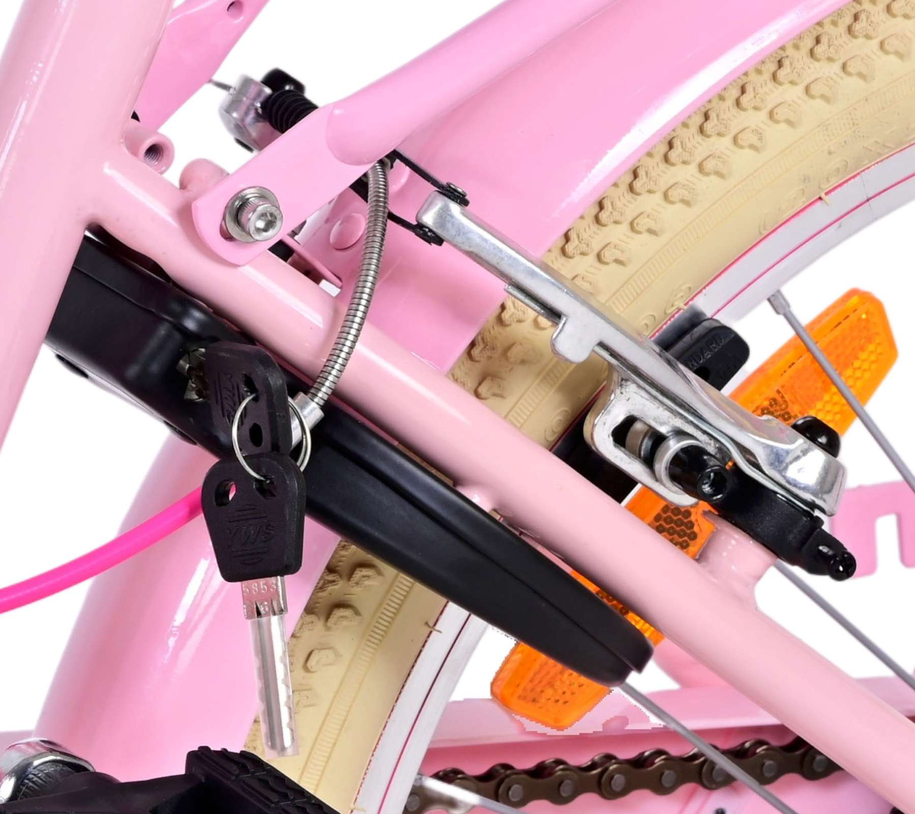 Sigurnost je na prvom mjestu! Zato ovaj cool bicikl ima dvije ručne kočnice, nema kočnicu za nagib i zatvoreni štitnik lanca. Osim toga, bicikl ima prednja i stražnja svjetla i zvono. Mislilo se i na udobnost. Prekrasan ružičasti bicikl Volare ima praktičan prednji nosač, stražnji nosač integriran u okvir i luksuzno mekano sjedalo. Kako biste što duže uživali u biciklu, sjedalo i upravljač su podesivi po visini.