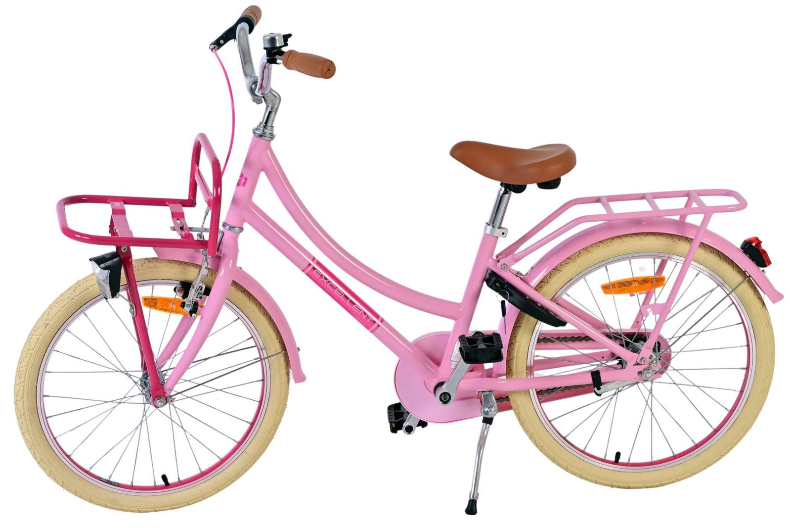 Sigurnost je na prvom mjestu! Zato ovaj cool bicikl ima ručnu kočnicu i stražnju papučicu kočnice te zatvoreni štitnik lanca. Osim toga, bicikl ima prednja i stražnja svjetla (STVO testirano) i lijepo zvono. Mislilo se i na udobnost. Prekrasan ružičasti bicikl Volare ima praktičan prednji nosač, stražnji nosač integriran u okvir i luksuzno mekano sjedalo. Kako biste što duže uživali u biciklu, sjedalo i upravljač su podesivi po visini.
