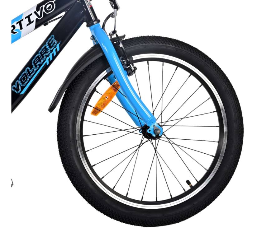 Sigurnost je na prvom mjestu! Zato ovaj cool bicikl nema stražnju kočnicu, već dvije ručne kočnice i lijepo zvono. Osim toga, bicikl ima katadioptere u kotačima te na prednjem i stražnjem dijelu bicikla. Mislilo se i na udobnost. Prekrasan neonski plavi bicikl Volare ima poluotvorenu zaštitu lanca, dugačke blatobrane koji štite svu prljavštinu i postolje kako bi bicikl uredno stajao. Kako biste što duže uživali u biciklu, sjedalo i upravljač su podesivi po visini.
