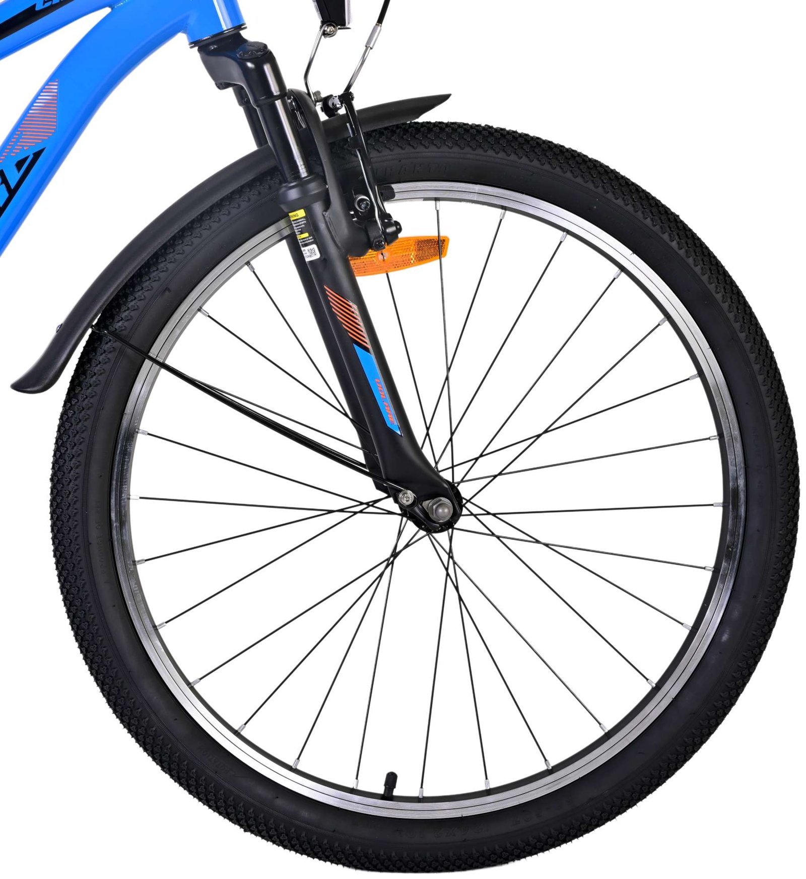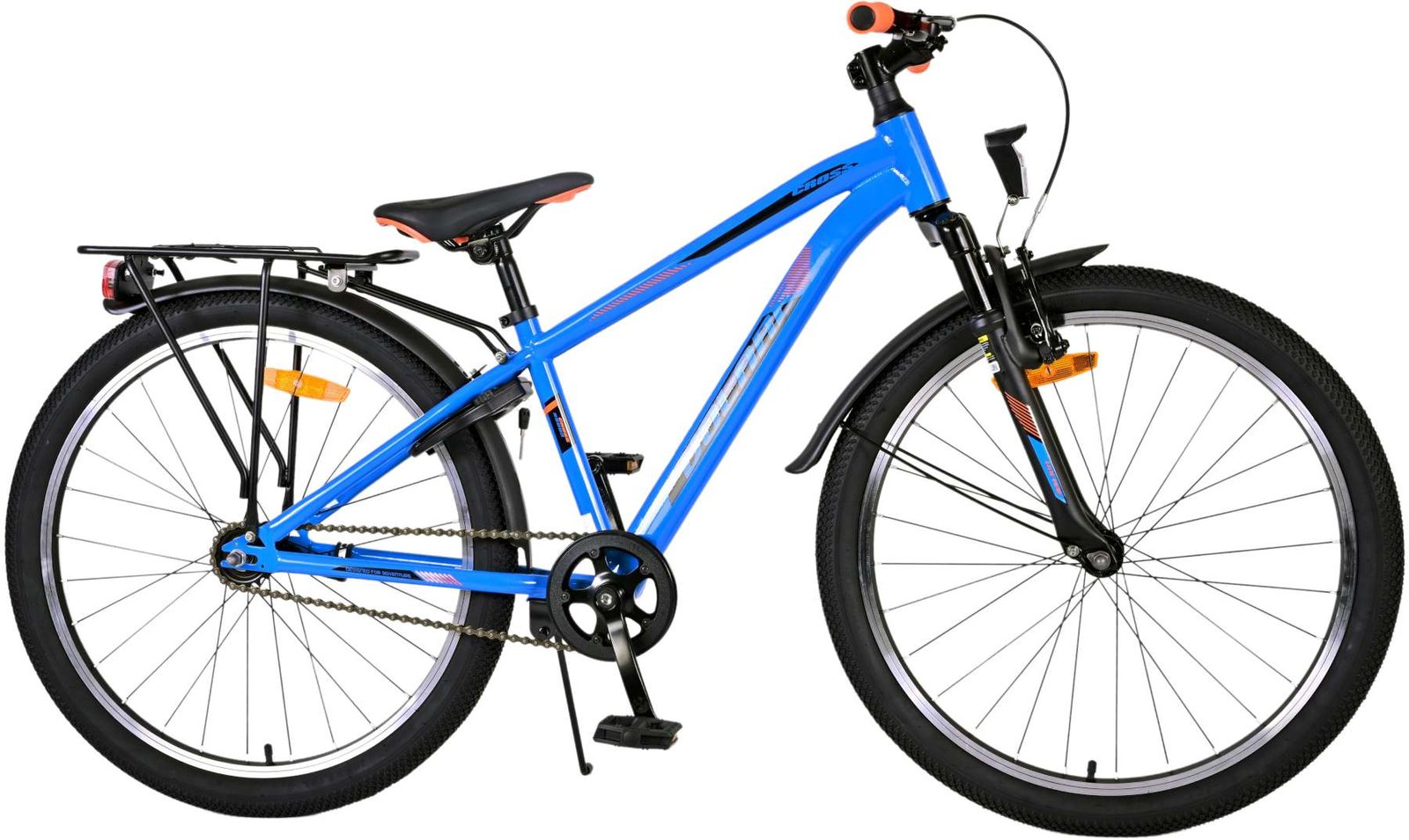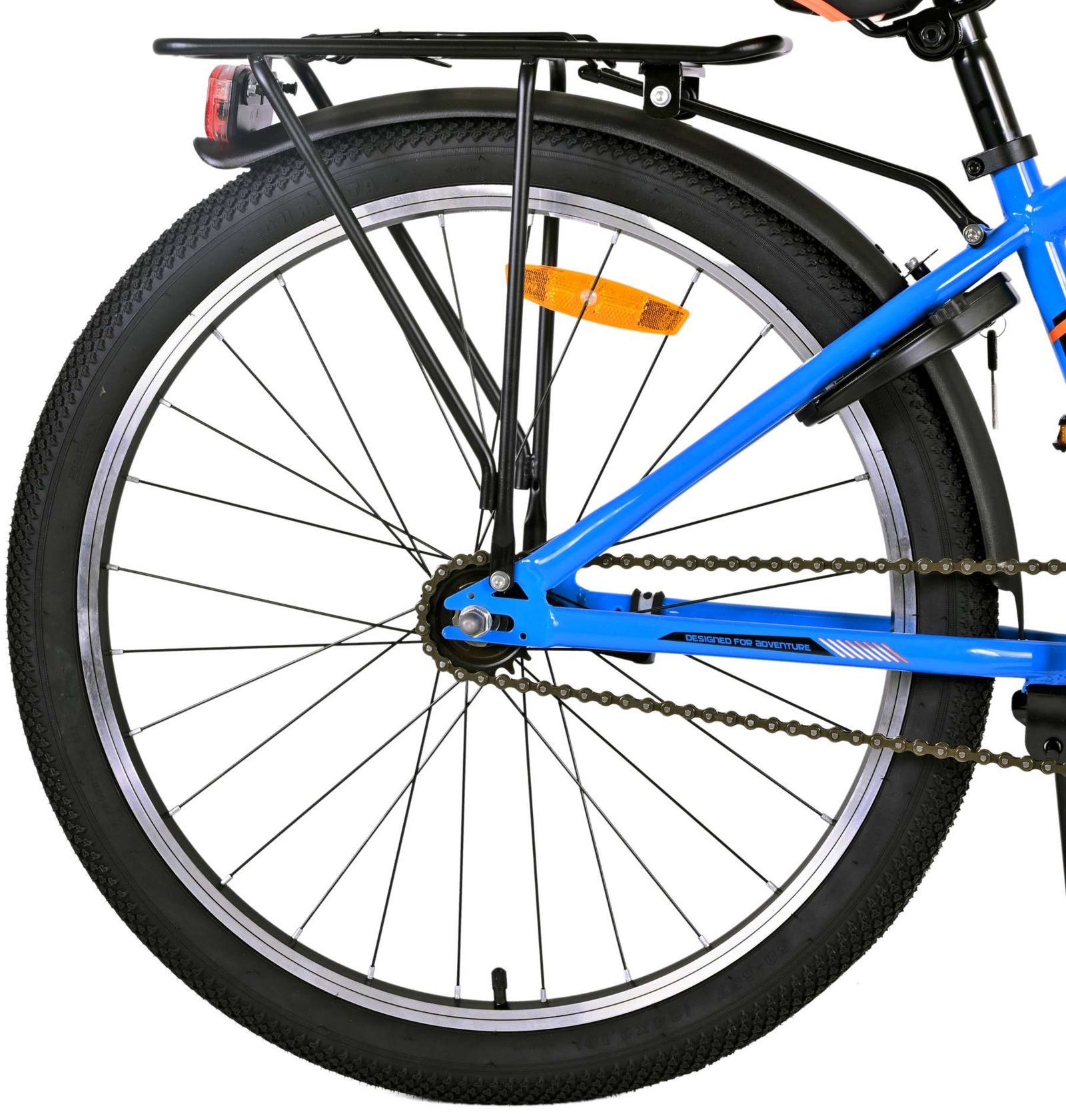 Sigurnost je na prvom mjestu! Zato ovaj cool bicikl ima ručnu kočnicu i kočnicu, reflektore u kotačima te prednja i stražnja svjetla na baterije. Mislilo se i na udobnost. Prekrasan tamnoplavi bicikl Volare ima praktičan stražnji nosač za nošenje svih vaših stvari bez napora, udobno mekano sjedalo, postolje kako bi vaš bicikl uvijek uredno stajao i čvrstu bravu. Kako biste što dulje uživali u biciklu, ima posebno dugu sjedalicu, tako da bicikl još dulje raste s djetetom. Imajte na umu da upravljač nije podesiv po visini!