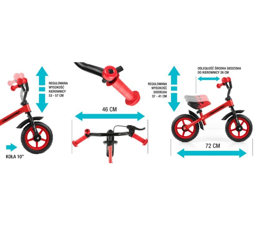 Bicikl guralica Dragon je dizajniran za malu djecu da nauče stabilnost. Bicikl je bez pedala, što vašem djetetu omogućuje da se usredotoči na učenje održavanja ravnoteže i smjera kretanja. Ima funkciju zaključavanje kuta upravljanja dobra je opcija za bebe koje tek počinju svoju avanturu s biciklom.