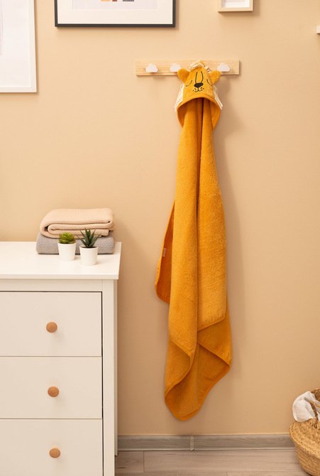 Ručnik za kupanje izrađen je od 100% nježnog pamuka. Mekan je, ugodan na dodir i vrlo upija. Zahvaljujući solidnim dimenzijama od 90×90 cm i prostranoj kapuljači, možete bez problema čvrsto zamotati bebu nakon kupanja.