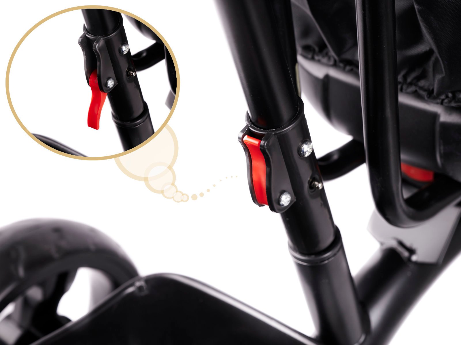 Uvijek imate punu kontrolu! Svakako ćete cijeniti sjedalo rotirajuće za 360 stupnjeva, koje roditelji rado koriste na početku korištenja tricikla, kako bi mogli pogledati svog mališana ili mu, naprotiv, pokazati svijet u šetnji.