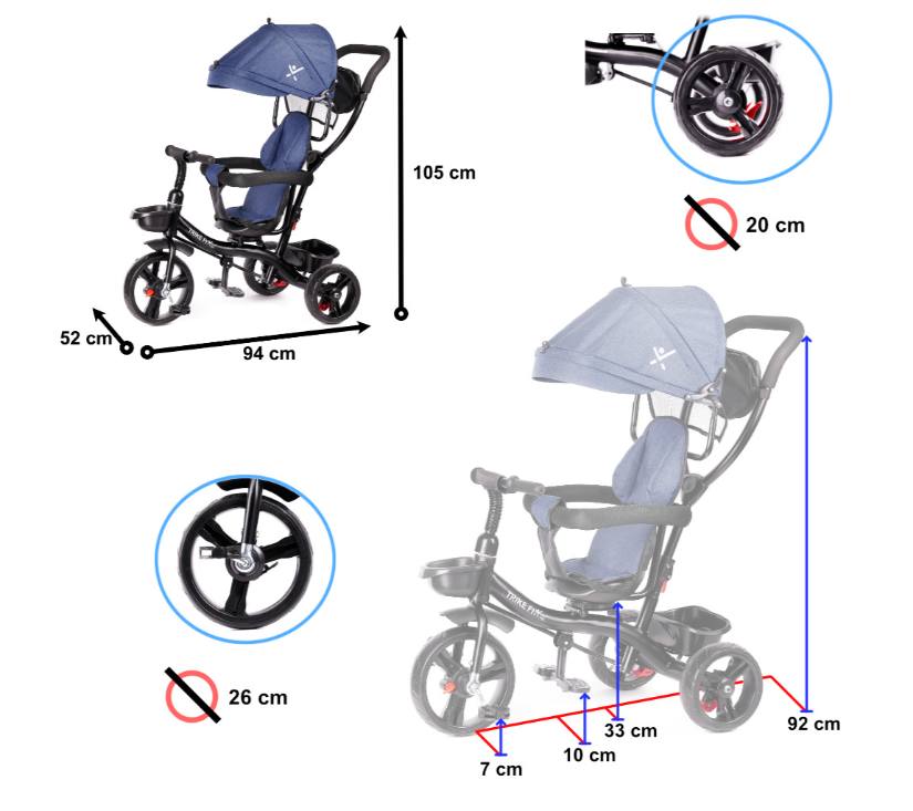 Dimenzije vozila (maksimalna visina x duljina x širina) 105 cm x 94 cm x 52 cm