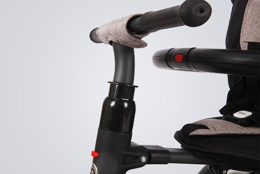 Tijekom šetnje, dijete se može igrati s upravljačem tricikla bez utjecaja na smjer kretanja tricikala zahvaljujući sustavu zaključavanja ugrađenog u upravljač. Ovim sustavom zaključavanja može lako upravljati roditelj u bilo kojem trenutku.