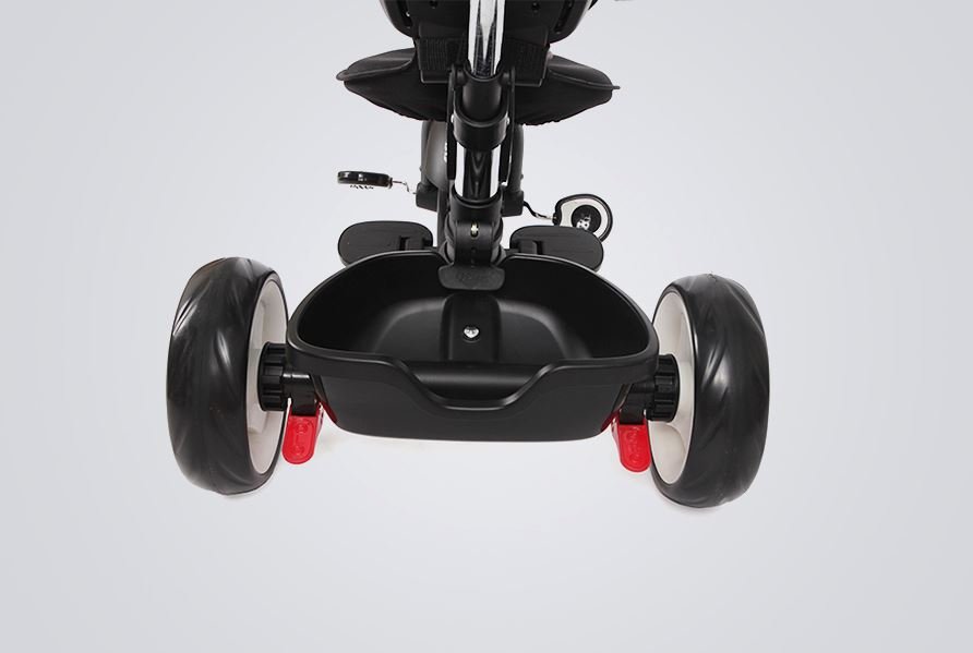 Možete uzeti dječje omiljene igračke i pohraniti ih u košaricu na okviru tricikla. Prednji kotač je opremljen sustavom “slobodnog kotača” koji se aktivira pritiskom na gumb. Sustav “slobodnog kotača” omogućit će da se pedale zakoče kad je dijete premalo.