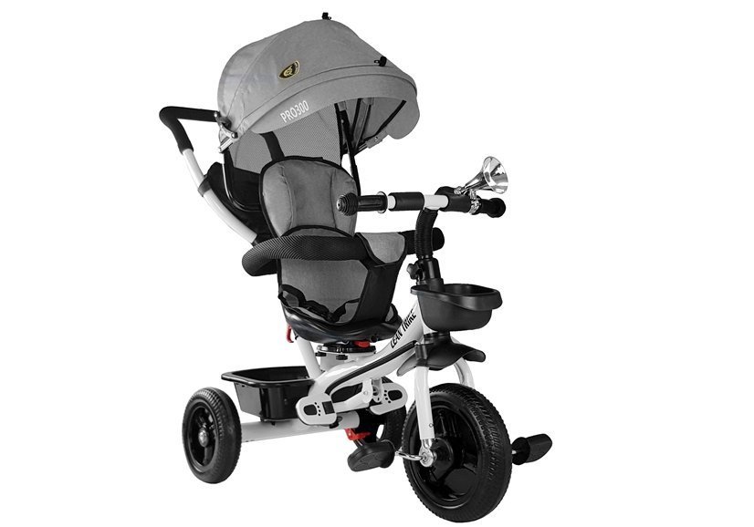 Dizajn bicikla uključuje prostranu košaru za kupovinu ili dječje blago, smještenu između stražnjih kotača, te malu torbu s patentnim zatvaračem na vodilici za roditelje – ovi detalji olakšavaju cjelodnevne vožnje i izlete. Zahvaljujući mekanoj pjenastoj ogradi, vaše dijete će biti potpuno sigurno tijekom šetnje i neće ispasti iz sjedalice. Dodatno, moguće je dječju sjedalicu okrenuti prema sebi i tako osigurati njegovu sigurnost. Na volanu se nalazi i zvono za trubu, kojim će Vaše dijete moći samouvjereno poručiti drugima da ide. Dječji bicikl na tri kotača namijenjen je svim bebama od 6 do 60 mjeseci starosti, čija težina ne prelazi 25 kg. Izrađen je od izdržljivog i otpornog materijala koji jamči dug život i udobnost korištenja. Bicikl ima mekane EVA kotače. Tricikl za djecu je upakiran u originalnu kartonsku kutiju unutar koje se nalaze vijci, alati i upute koje olakšavaju samostalnu montažu.