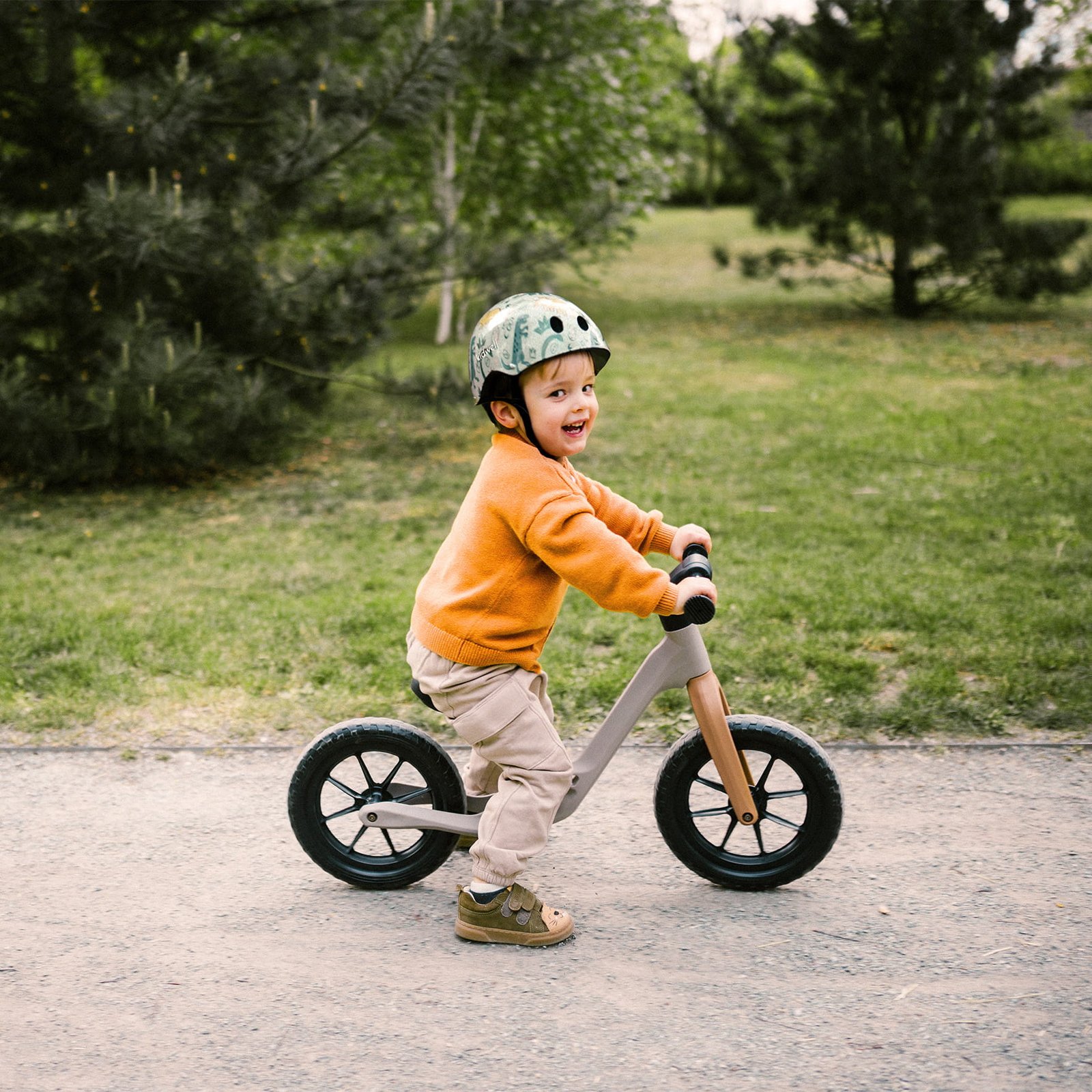 Jeste li znali da… Dobro prianjajuća kaciga nije samo udobna, već i sigurnija. Isprobajte – stavite kacigu na dijete, pričvrstite je, stavite ruku na kacigu i zamolite dijete da okreće glavu s jedne strane na drugu. Ako kaciga pravilno pristaje, neće se pomicati na djetetovoj glavi unatoč otporu vaše ruke. EPS uložak Uložak od EPS pjene dizajniran je da apsorbira i ublaži što je više moguće udarca. Raspršuje silu udarca, štiteći ne samo glavu već i gornji dio vratne kralježnice. Podstava Mekani elementi podstave povećavaju udobnost tijekom nošenja i omogućuju bolje prianjanje kacige. Zahvaljujući čičak zatvaraču, mogu se lako ukloniti i očistiti, održavajući vlasište svježim i higijenskim. Sigurnost • Dizajn kacige pruža djetetu široko vidno polje, osiguravajući sigurnu i udobnu vožnju. • Kaciga ORIX II Plus ispunjava sve sigurnosne zahtjeve i u skladu je sa standardom EN 1078. • Ima CE certifikat i SGS sigurnosni certifikat. • Certifikati pružaju veću sigurnost i pouzdanu zaštitu od opasnih incidenata. SPECIFIKACIJA: • Marka: Kidwell • Model: ORIX II Plus • Materijali: PP školjka, EPS uložak, pjenasta podloga • Težina proizvoda: 255 g • Veličina: S – 48-52 cm • Uključeno: Kaciga, upute za uporabu na poljskom, engleskom i njemačkom jeziku