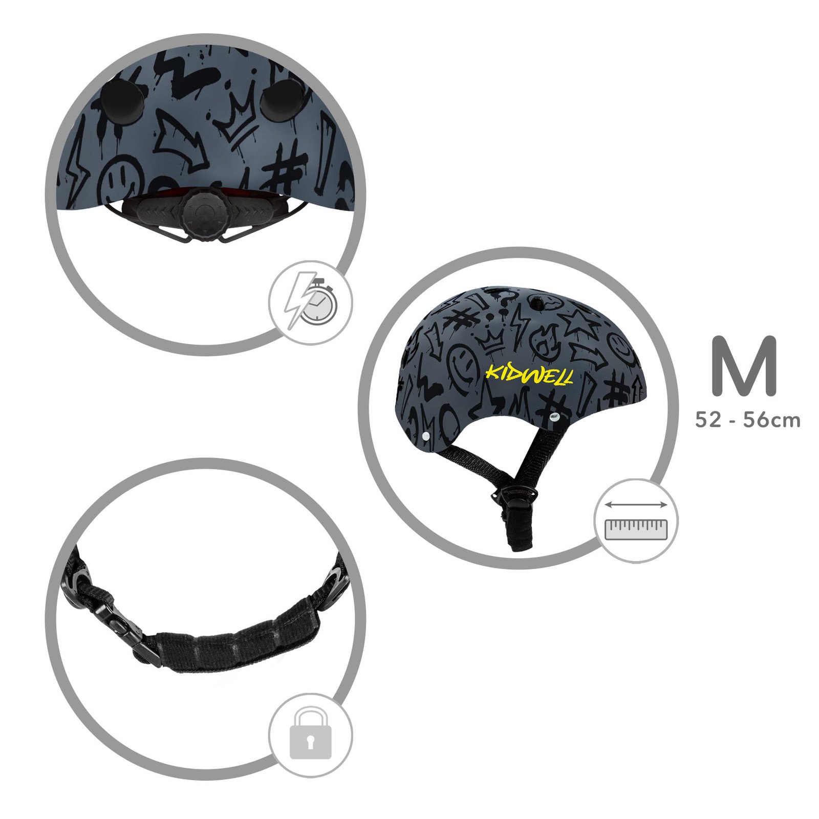 Kidwell ORIX II Plus zaštitna kaciga za djecu za bicikle, role i romobile! Da bi kaciga bila učinkovita i sigurna, prije svega mora… biti na djetetovoj glavi. Izgled i udobnost kacige ORIX II potaknut će djecu da je nose. Pružite svom djetetu najbolju zaštitu i sigurnost opremajući ga Kidwell kacigom! PP školjka Izdržljiva polipropilenska školjka apsorbira energiju pri udaru. Ovo je prva razina zaštite u kacigi Kidwell ORIX II. Podešavanje • Praktičan sustav podešavanja pomoću gumba omogućuje bolje prianjanje kacige – od 52-56 cm. • Podesivi remen s izdržljivom kopčom osigurava da je kaciga sigurna i stabilna. • Mekani pokrov kopče — nema rizika od uštipkanja djetetove kože. • Remeni su izrađeni od materijala mekog dodira koji ne iritira djetetovu kožu. • Opsežan sustav podešavanja omogućuje dulje korištenje kacige.