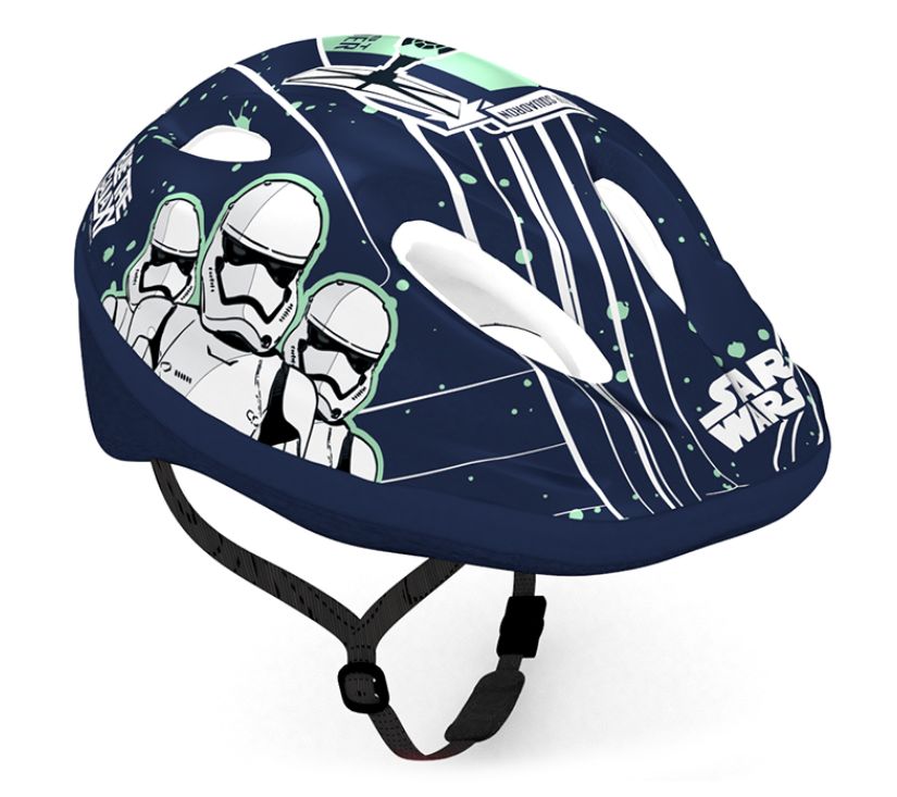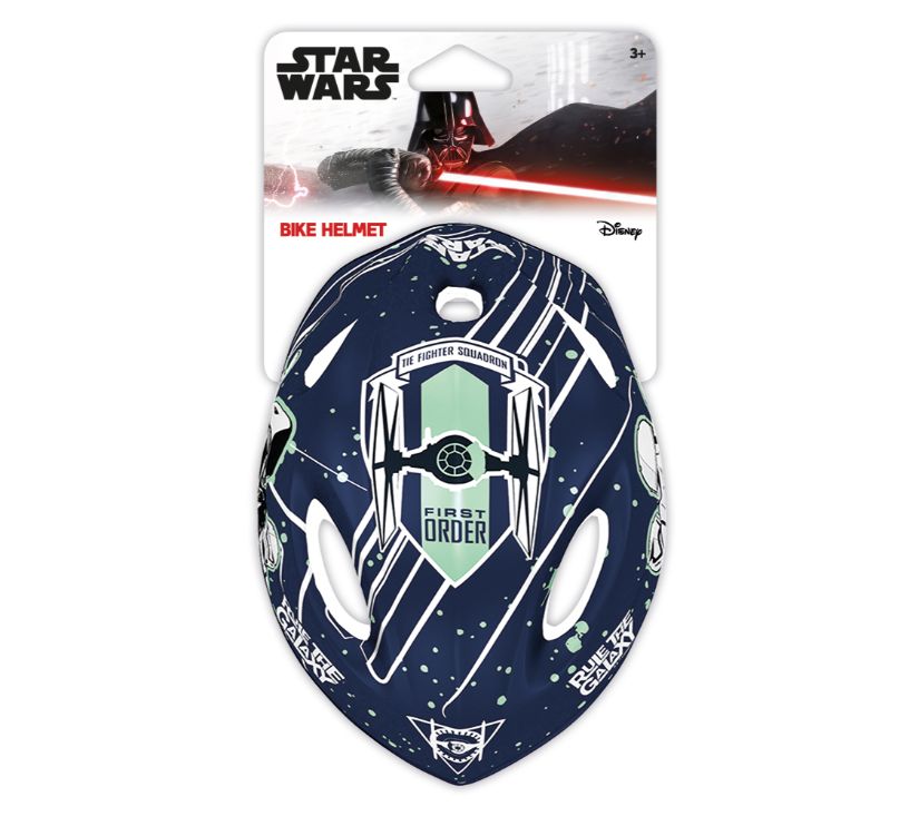 Kaciga se preporučuje djeci dok koriste bicikle, role, romobile i sl. Kaciga je izvana izrađena od PVC-a i ukrašena likovima iz Star Wars, a iznutra je izrađena od EPS pjene koja upija udarce. Kaciga je opremljena gumbom za podešavanje za prilagođavanje kacige djetetovoj glavi, naramenicama s obje strane zakopčane ispod brade s kopčom s mekanim jastučićem. U ljusci kacige postoje otvori za ventilaciju.