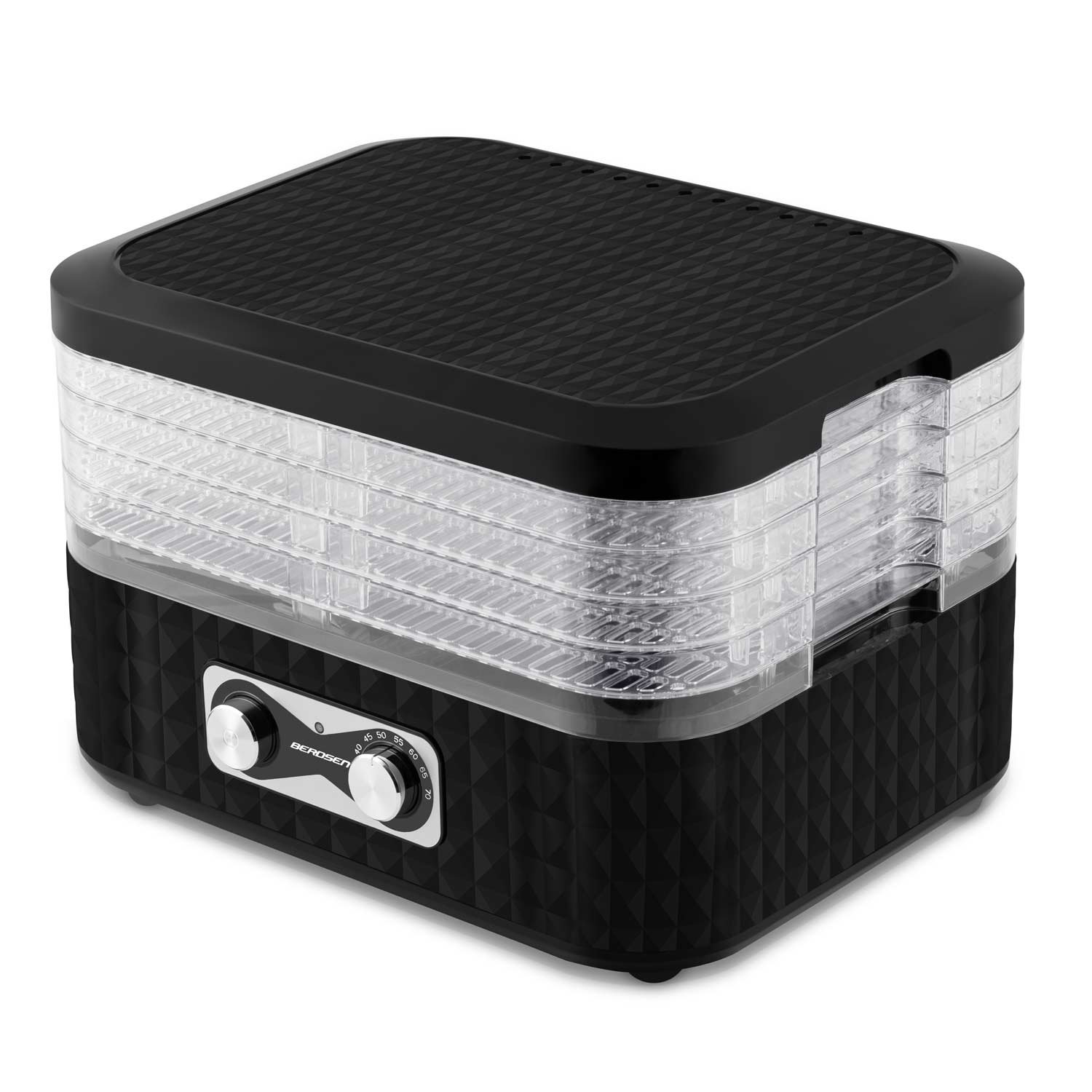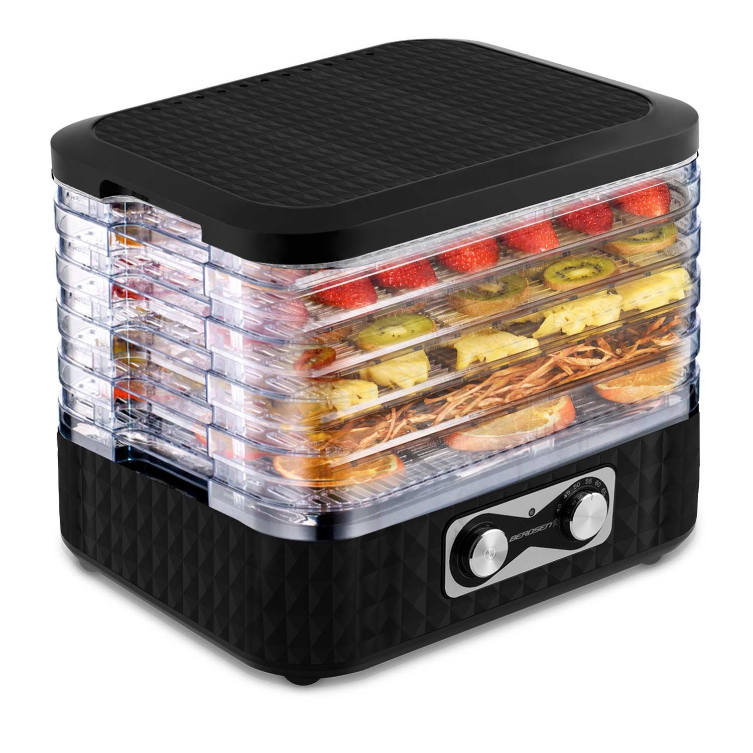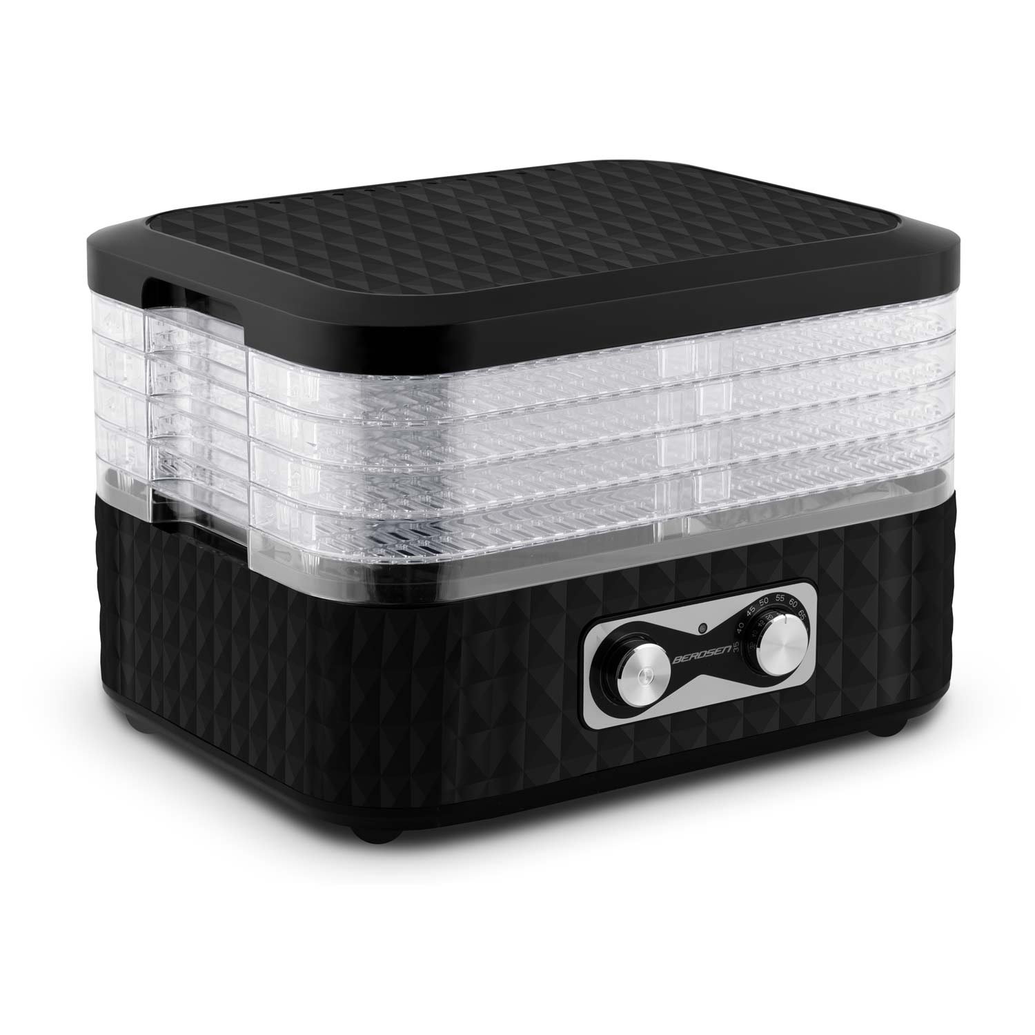 Zahvaljujući preciznoj cirkulaciji zraka unutar Berdsen dehidratora, možete biti sigurni u savršeno osušene proizvode. 5 ladica – Velika površina za sušenje