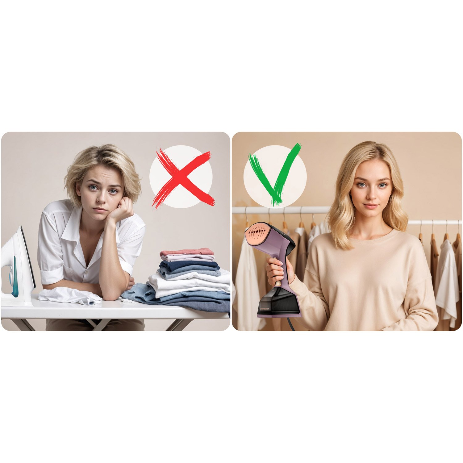 Recite zbogom zamornom i dugotrajnom zadatku postavljanja daske za glačanje i zagrijavanja glačala. Peglajte odjeću jednim potezom, direktno na vješalici!