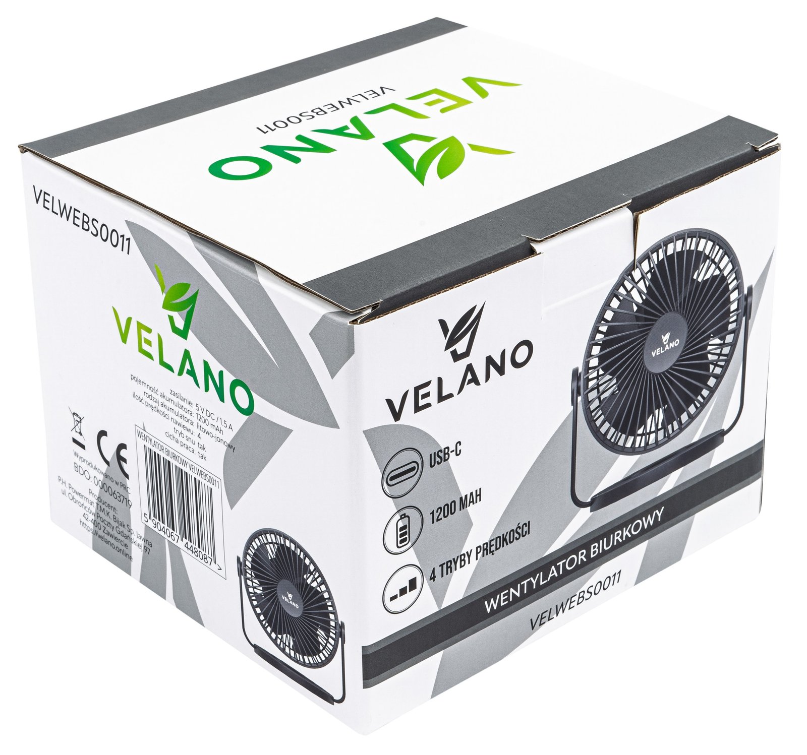 Ventilator je opremljen litij-ionskom baterijom od 1200 mAh, koja osigurava dug i pouzdan rad bez potrebe za čestim punjenjem.