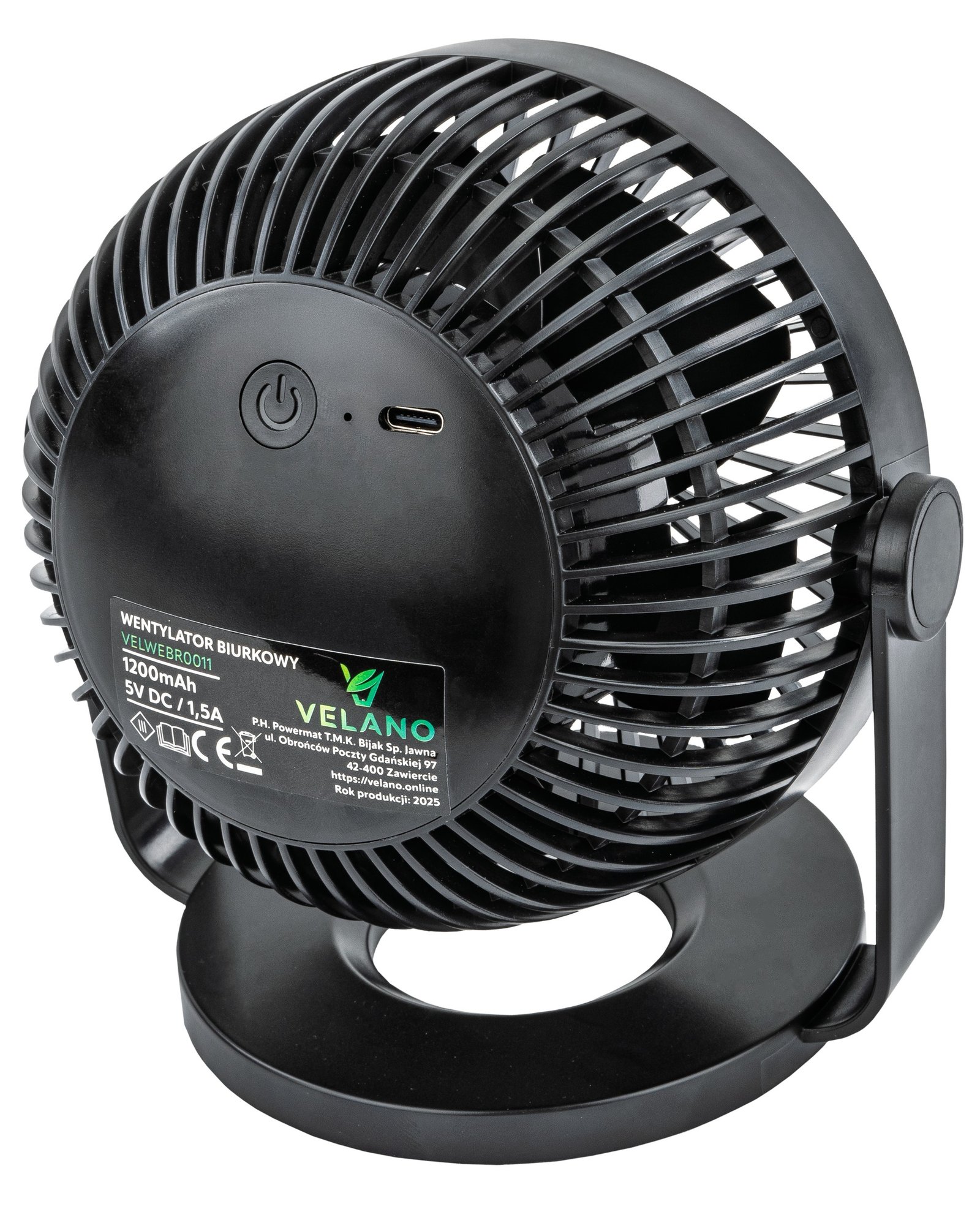 Ventilator se napaja putem USB-C priključka, što omogućuje punjenje s prijenosnog računala, powerbanka ili zidnog punjača. U kompletu je uključen odgovarajući kabel.